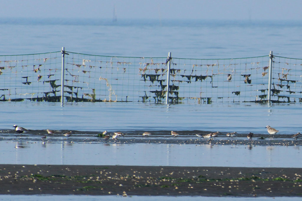 少し前になりますが、5月20日に、船橋の三番瀬海浜公園にシギを見に行って来ました。その日のブログにアップしなかったら、こんなに後になってしまった。そして、今日いつもの葛西臨海公園に行ってきました。両方の写真をまとめてアップします。まず、5月20日の三番瀬から。ここは初めて行く場所でした。その日の干潮は朝6時半ころ(シギ、チドリを見に行くときはできるだけ干潮時に行くほうがよいのです)、さすがにその時間には間に合わなかったものの、ものすごく早起きして、7時前には着きました。京葉線二俣新道から歩いたら、30分近くかかりました。時期的に、渡り途中のシギチドリを見る最後のチャンスでした。干潮なので沖合いまで歩いていこうと思ったら、網が張ってあって先に進めません(涙)。シギチドリはすごく遠くて、豆粒のようにしか見えません。左端の、顔とお腹が黒い鳥はダイゼン(チドリ科)、あとはハマシギがいます。(お腹が黒い、少し小さなシギ)同じく左端はダイゼン、右端近くの大きなシギはオオソリハシシギ、あとはハマシギがいますが、それ以外はよく分かりません。メダイチドリ。待っていると、だんだん潮が満ちてきて、干潟が狭くなってきたので、シギたちもすこし岸辺に近付いてきました。これはトウネンと思われます。ミユビシギでしょう。左からハマシギが3羽、キョウジョシギ、その右に群れているシギは、背を向けているのでよく分かりません。ハマシギとミユビシギ、キアシシギかアオアシシギでしょうか。三番瀬の写真はここまでで、次は本日の葛西臨海公園です。今日の干潮は7時過ぎ、三番瀬のときほどではありませんが、早起きして行きました。シギ類はほとんど姿を消し、わずかにキアシシギを1羽見かけただけ。珍しい鳥はいなかったけど、鳥たちは子育ての季節です。ツバメが巣の材料の泥を集めています。こういう時以外は、ツバメが地上に降りることは、まずありません。コチドリ。こんな至近距離での観察は初めてかもしれません。これもコチドリハクセキレイは夏羽になりました。カルガモの親子です。カモのヒナは可愛いねえ。カイツブリも浮巣で卵を温めています。さて、何カモでしょうか?葛西臨海公園鳥類園のブログによるとオカヨシガモがこの近辺にいるそうです。しかし、図鑑で見てもネットで調べても、このカモはオカヨシガモとはどうも違うような気がします。カルガモではない。マガモでもない(手前の、向こうを向いている個体はマガモの可能性ありますが)はてさて。西なぎさに移動したら、なんとまだ20羽くらいのスズガモの群れがいました。このまま、もう北には帰らないのでしょうか。コサギが3羽集まってきました。写真には写っていませんが、潮干狩り客のほんの数メートル先です。ウミネコがやってきました。日本で普通に見られるカモメ類の中で、尾に黒い帯が入るのはユリカモメの若鳥とウミネコだけです。東なぎさに群れていた水鳥たちがいっせいに飛び立ったのです。猛禽類が来たなと思って見上げたら、いたいた!でも、後で写真を確認したら、トビだったのでがっくり。いや、トビだって立派にタカ科の猛禽だけど、あんまり猛禽らしくはありません。東なぎさに群れる水鳥。黒いのはカワウ。あとサギ類、カモメ類がいますが、種類まではさすがに。シギじゃないかって思う鳥もいたけど、とても同定はできません。巣立ったばかりのシジュウカラの幼鳥。で、今日も例によって、笛ケースを持って鳥を見に行ったのでした。なので、この後はもちろん笛の練習をして帰りました。
