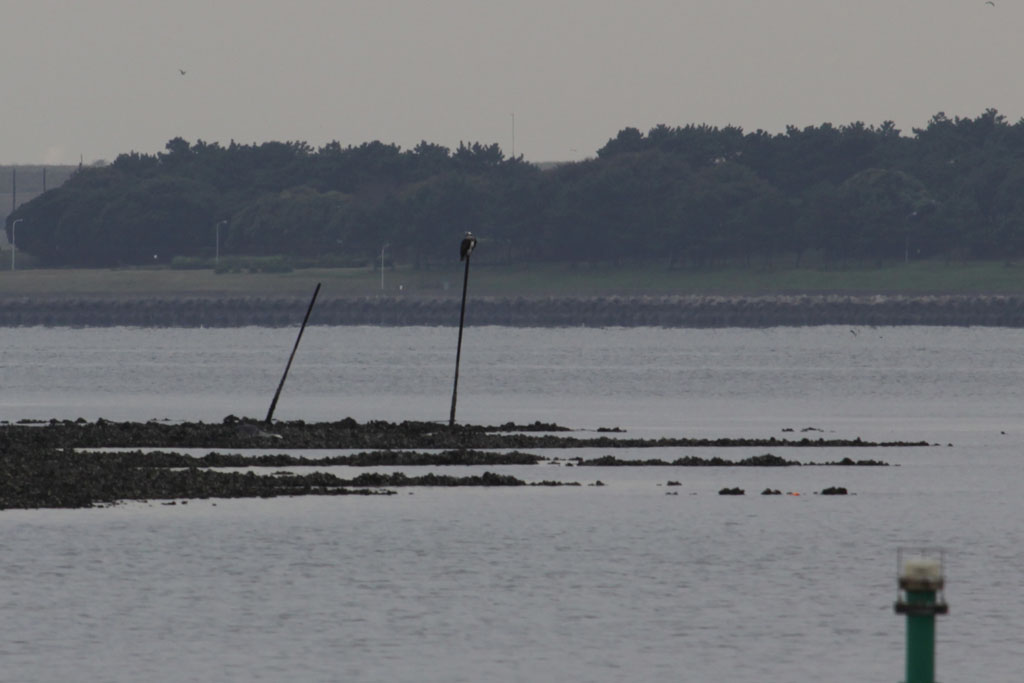 この土日は2日とも練習があったのですが、土曜は練習の前に、日曜は練習の後に、鳥の写真を撮りに行ってきました。まず、土曜日の朝、葛西臨海公園です。東なぎさの杭の上に何かが止まっているのですが、まだ西なぎさが閉鎖されている時間だったので、近寄れません。最大望遠で撮影しましたが、こんなに小さい。さて、 何の鳥でしょう。250mmの望遠レンズにテレコンをつけて、350mm相当にして、それでもファインダーを見ただけでは(双眼鏡でも)はっきりとはわかりませんでした。あとで写真を等倍に拡大したら、ミサゴでした。英名オスプレイ、例の出来損ない飛行機の語源です。トビが飛んでいます。この日はトビが多くて、「何か猛禽が飛んでいる」と思うと、先ほどのミサゴ以外は全部トンビでした。カワセミ。9月初めから、常に同じ場所にいます。カワセミは人気者だから、その周囲には常に10人以上のカメラマンが群がっていました。カワセミ。カワセミが飛んだ。まだ今年生まれの若い個体なので、狩りは下手で、なかなか魚を捕らえられません。ハクセキレイ。これも逆光気味で色や模様がよく見えず、「スズメではない何か」としか分からないまま写真を撮ったのですが、あとで画像補正すると、エゾビタキでした。同じくエゾビタキ。名前はエゾですが、実際はもっと北の千島、サハリンから春と秋に渡りの途中で立ち寄る鳥です。エゾビタキ。何の変哲もないただのカラス、ではありません。都会の街中で普通に見かけるカラスはハシブトガラス。これはハシボソガラスです。珍しい鳥というわけではなく、農村などではハシボソガラスのほうが普通ですが、都会で見ることは稀です。ハシブトガラスは、「カーカー」と澄んだ声で鳴きますが、ハシボソガラスが、「ガーガー」と濁った声です。ただし、カラスはご存知のとおり、頭が良くて器用な鳥で、モノマネも上手いので、「本性」を隠した鳴き方もできてしまいます。だから、鳴き声のみでは判断できません。決定的なのは、頭とくちばしのシルエット。ハシブトガラスは、名前のとおり嘴が太く、おでこが出っ張っているのに対して、ハシボソガラスは嘴がやや細く、頭の形もスマートです。これが、街中で普通に見られるハシブトガラス。比べれば、頭の形の違いは一目瞭然。東なぎさにて、再びミサゴを発見。続いて翌日10月1日、この日は朝から練習で、そのあと、練習場所からあまり離れていない明治神宮と代々木公園をちょっと歩きました。(ついでに、練習の「復習」もしたけど)あまり珍しい鳥には遭遇できませんでしたが。ヤマガラヤマガラ。シジュウカラの仲間で、シジュウカラは我が家の近辺でも見かける、ありふれた鳥ですが、ヤマガラは都会ではかなり大きな公園にしかいません。でも、ヤマガラの方が人を恐れないのか、間近で撮影できるチャンスは、ヤマガラの方が多いように思います。