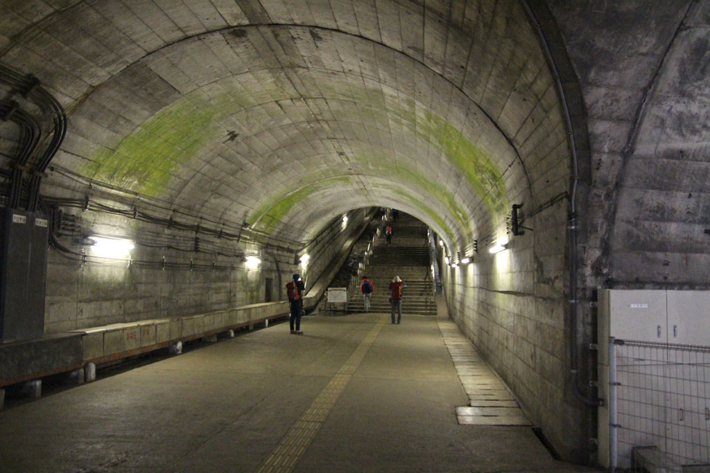 先月の高尾山に続き、登山復活第2弾です。何としても今シーズン中に雪山再開したいと思い、かなり無理無理ですが谷川岳に行ってきました。(山頂には行っていません)土合駅の下り地下ホーム。ここから動画を撮りながら歩いていったら、駅舎の外に出るまで9分42秒の動画になりました。怪我をする前、2016年1月に白毛門に登った際は約8分だったので、1分以上遅くなっています。土合駅の駅舎。雪の量は3月初旬としてはやや少なめ、というところでしょうか。当初予定では、一ノ倉沢の展望台に行くつもりだったのですが・・・・・・一ノ倉沢展望台への遊歩道はこんな状態。踏み跡はあるので柵を超えて入ってみたものの・・・・・・踏み跡が錯綜していて、どれが遊歩道に向かう踏み跡か、翼分かりません。トレースがもっときっちりしていると思ったのですが。今の足の状態だと、トレースのはっきりしない斜面のトラバースはちょっときついのです。そんなこんなで、当初予定は早々に断念。が、しかし、ここであきらめて帰るのでは、何しにきたのか分かりません。そこで、文明の利器をフル活用。ロープウェイで一気に天神平へ。往復2060円。天気はこんな状態で、視界はありません。とりあえず、天神尾根を目指して登りました。8本歯の中アイゼンにピッケルなしなので、当然山頂まで行くことは考えていません。ただ、後で考えると、斜面そのものの状態は、先ほど断念した一の倉沢への遊歩道より厳しかったはず。(トレースがしっかりしていたのが大きな違いですが)天神尾根に出ました。今日の登山はここまで。ロープウェイの終点は目と鼻の先。ロクに登ってはいませんが、この斜面は天神尾根コースの中では割合に急斜面なのです。今の私の足の状態としては、目いっぱい、というか、普通足首骨折から3ヵ月半後の人間がこんなところは登らないでしょうが。と、言いつつ、実は・・・・・・実はもうちょっと先まで行きました。この写真で数人がかたまっているあたりの手前まで。ただし、そこまでは平坦な道なので、先ほどの地点からはもう「登って」はいません。本日の到達地点。ここで折り返しました。時間的な面、難易度などから考えれば、もう少し先、熊穴沢避難小屋あたりまでは行けたと思いますが、今日はここまで。ブナ林の間の道を引き返します。西黒尾根。登っている人がいました。天神尾根に出たところで待っていると、ガスが切れて山頂が見えてきました。晴れた!谷川岳の雄姿12時半頃、下山開始。下り始めてすぐが急斜面で、慎重に慎重に(またはノロノロヨタヨタと)下り、無事何事もなくロープウェイまで戻ってきました。すっかり快晴です。白毛門から朝日岳にかけての山々谷川岳そして、土合駅まで帰ってきて、白毛門を撮影。距離的にはわずかしか登っていませんが、今シーズン初めて、雪山に登った、しかも天気もよく、大満足でした。ただ、距離は短いものの、難易度的には今の自分の足にはちょっと無理したかも。足への負担は、かなりいっぱいいっぱいでした。もちろん、痛めたりはしませんでしたが。来シーズンは山頂まで登れるまで回復しているといいなあ。