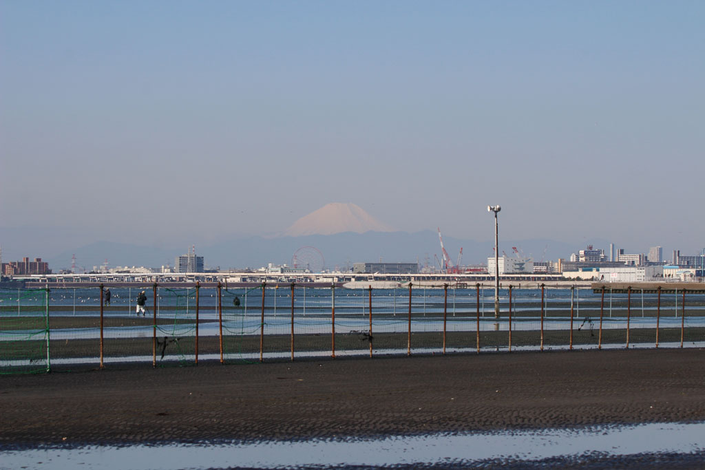 今日は朝から快晴。山に行きたい!のはやまやまですが、先週行ったばかりだし、まだまだ足の状態は山登りには万全とはいえない状態だし、結局は回避したものの、状況によっては休日出勤の必要もありそうだったので、遠方への外出は避けて、三番瀬に鳥をもに行きました。鳥を見に行ってまず山を撮る。葛西臨海公園の大観覧車の向こう側に富士山がうっすら見えます。400mmの最大望遠で富士山。いつか、冬富士にも登れるだろうか。積雪期は、ゴールデンウィークに3000mまでしか登ったことないけど。で、シギ・チドリ類はたくさんいました。手前にシギ類、奥にカモメ類、更に向こうにミヤコドリ。前回三番瀬に来たときは、ミヤコドリは一羽もいませんでしたが、今日はたくさんいました。元祖都鳥のユリカモメと、本家都鳥のミヤコドリ(笑)平安時代の伊勢物語などに「都鳥」の名が登場しますが、これは現在のミヤコドリではなく、ユリカモメのことを指すといわれています。どうも、江戸時代以降に都鳥の名がユリカモメからミヤコドリにかわったようです。かつては、日本ではきわめて稀な鳥でしたが、近年は東京湾で300羽くらいが越冬しています。シギ・チドリの足跡。実は干潟のあちこちに刻まれています。だって、こんな団体さんでうじゃっと沢山いるんだから、そりゃ足跡も残ります。大多数がハマシギ、トウネン、ミユビシギも混ざっています。ダイゼン(チドリ科)も混ざっています。そして・・・・・・オオソリハシシギが1羽いました。この写真に写っている範囲は、ほとんどハマシギ。ハマシギ。断片的に夏羽が現れはじめています。ハマシギ。一番手前(左)がハマシギ。奥の2羽(中央と右)がトウネン。(ミユビシギと書きましたが、トウネンでしょうね)冬羽だと両者酷似しているので、パッと見分かりにくいです。シギが一斉に飛んでしまいました。文字どおり1羽もいなくなってしまいました。後には、ダイゼン(チドリ科)とカモメ類だけが残っておりました。ちなみに、前述のミヤコドリはミヤコドリ科ですが、系統的にはチドリ科に近縁です。もっとも、シギ科もカモメ科も、チドリ目なので、大きな枠としてはみんな近い仲間とも言えますが。