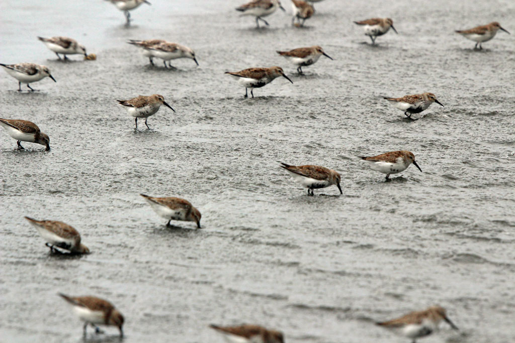 昨日ですが、午後例によって三番瀬海浜公園に鳥の写真を撮りに行ってみました。そうしたら、京葉線が少し遅れています。嫌な予感がしたのですが、案の定、二俣新町駅に着いたら強風。自宅近辺はそんなに風吹いていなかったんですけどね。どうしようかと思いましたが、ここまできて引き返すのは交通費がもったいないので、行ってみることにしました。駅で強風でも、海岸はそんなに風が強くないかもしれないし(なん、わけがないって!!)そうしたら、海岸に着いたら凄まじい烈風が吹いていました。ハマシギの群れ(左奥に少しミユビシギがいますが)。腹の黒い夏羽に変わりつつあります。ミユビシギ。こちらはまだ冬羽。強風のせいでしょうか、目いっぱい首をすくめています。そのせいで、何だかいつもと体型が違って見えます。オオソリハシシギ。赤い夏羽になっています。結構首の長いシギですが、こちらも首をすくめています。中央オオソリハシシギ、奥ミヤコドリ、手前ハマシギ。ハマシギもみんな首をすくめています。荒れ狂う風、激しい並しぶきをものともせずに餌を食べるミヤコドリ。強い。左ダイゼン、右オオソリハシシギダイゼン(シギではなくチドリ科)も夏羽です。ハマシギの夏羽は腹黒いシギ(笑)ですが、こちらは腹黒いチドリ。オバシギ。背中が少し夏羽になっています。ハマシギ。だいぶ夏羽になってきた個体。そして、今日葛西臨海公園。ウズラ。つい先日ウズラの玉子を食べたばかりですが。野鳥か、ペットや飼育場から逃げ出した(あるいは放たれた)ものかは分かりませんけど、野鳥だ、と考えておくことにします。葛西臨海公園のその他の写真はまた後日。