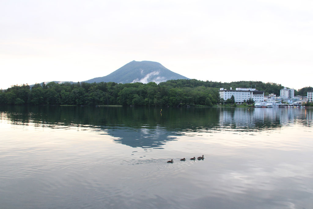 というわけで、雌阿寒岳と霧多布の写真(一眼レフ)を何回かに分けてご紹介します。第1回は、初日(7月12日)朝東京を出て、Air DoのB737-700で10時前に釧路空港着でした。阿寒湖に昼前に到着しました。釧路空港は曇でしたが、阿寒湖は晴れ。宿の近くの駐車場にハクサンシャクナゲが植わっています。本州中部なら標高2000m以上にしかない花が、阿寒湖では街中で咲いている。花の名前は分かりません(植栽です)。蝶はコヒオドシ。昼食を食べると、まずは登山口の下見に出かけます。雌阿寒岳登山口は、阿寒湖からと野中温泉(雌阿寒温泉)から、オンネトーからの3つのコースがあるものの、野中温泉とオンネトーは公共交通機関がないので断念、阿寒湖から上ることにしました。が、その登山口へのルートも白湯山自然遊歩道というのとフレベツ林道の二つあります。そこで、下見のため、前者で登山口まで行って後者で帰ってきました。白湯山自然遊歩道は、スキー場から入っていくのですが、そのスキー場の一角に、阿寒湖展望台というのがありまして、そこから撮影しました。阿寒湖と雄阿寒岳がよく見えます。同じ場所で雄阿寒岳のアップ。さらにアップ。雄阿寒岳は10年前に登りました。それ以来、いつかは雌阿寒岳も登りたい、と思って今日に至りました。白湯山遊歩道にて。軽く考えて登山靴は宿において、ジョギングシューズで来ましたが、そこそこの登山道でした。晴れて、下が乾いていたのでさほど問題ありませんでしたが、地面が濡れていたら、ジョギングシューズでは悲惨なことになっていたでしょう。案内板のとおり、周囲は噴煙だらけです。遊歩道の最高地点が展望台になっています。写真を縮小したので読めませんが、標高815mとあります。阿寒湖が同420mなので、標高差400m弱。ほぼ高尾山並みの標高差を登ったわけです。展望台からの景色。絶景です。雌阿寒岳までは登れない人は、ここで写真を撮るだけでも(晴れていれば)充分景色を楽しめます。同じ場所で阿寒湖のアップ。なんだか笑える案内板。文面は仮のもので、これから本格的に表示する、のだと信じることにします。雌阿寒方面もちょっと見えました。基本的に、阿寒湖からは雄阿寒岳はよく見えますが、雌阿寒だけはあまり見えません。展望台の先は林道を歩いて、雌阿寒岳登山口に至ります。入山者名簿を見ると、ほとんど入山者はいません。多くて2組、少ないときはゼロ。雌阿寒岳に登る人の大半は、こちらではなく野中温泉、オンネトー側から登るようです。ここからのくだりはフレベツ林道を下って、宿に戻りました。しかし、このフレベツ林道が長いのです。阿寒湖からフレベツ林道経由で登山口まで6-7km、自然遊歩道経由も大同小異とすると、往復12-14kmくらい。(寄り道したりしているので、 実際はもう少し歩いている)登山口に着くまでが充分遠い。で、翌日の本番の雌阿寒岳登山は、帰りにとおったフレベツ林道経由で行くことに決めました。登山らしからぬ(笑)豪華な夕食をいただきます。写真には写っていませんが、当然泡の出る麦茶もいただきました。小ジョッキにしましたけど。翌日は午後から天候の悪化が予想されたため、早朝4時気性4時半出発と決め、早々に寝ました。
