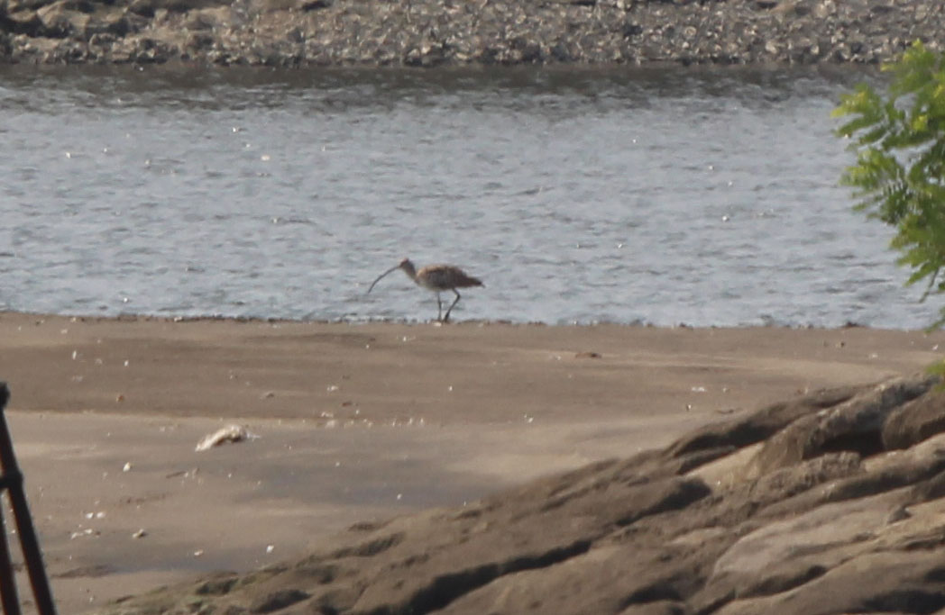 酷暑の夏が続いていますが、鳥たちの秋の渡りは始まっています。7月22日、葛西臨海公園にて。ダイシャクシギ。本来は旅鳥(渡りの途中で立ち寄る鳥)ですが、この固体はどうやら留鳥化してしまい、葛西臨海公園に真夏も真冬も1年中いるみたいです。で、いつもはるか遠方からしか撮影できなかったのですが、このときは西なぎさですなり近い距離から撮影できました。ただ、ちょっとピントがあっていなかった。あっという間に飛んでしまったので。無念のピンボケ写真ばかりですがこうやって見ると、くちばしの長さは異様です。体の大きさ自体も、シギ科のなかでは最大級で、ほぼ小型のカモ類くらいの大きさがあります。何というか、やはり異形の鳥です。ダイシャクシギ続いて8月4日、同じ機葛西臨海公園。この日も酷暑でした。さて、どこに何がいるでしょうか。チュウシャクシギです。先ほどのダイシャクシギと同属ですが、嘴は多少短いので、ダイシャクシギほどの異形という印象はありません。キアシシギの群れ。珍しくチュウサギがいました。左がチュウサギ、右がダイサギ。並ぶと、チュウサギよりダイサギのほうが大きい、嘴はチュウサギよりダイサギのほうが長いのが分かりますが、並ばないとその差は分かりにくいです。一番はっきりした違いは、眼の下の線で、眼より大きく目元まで線が入っているのがダイサギ、眼の下あたりで止まっているのがチュウサギです。そして、8月5日船橋三番瀬海浜公園。やはり酷暑でしたが、干潟は風があるのでそんなに暑い感じはしませんでした。駅から干潟までの行き帰りは暑かったですが。(片道2kmもある)珍しい鳥は折らず、定番の鳥ばかりでした。キアシシギミヤコドリミヤコドリ、全部で4羽いました。ミヤコドリのアップ(と言いたいですが、等倍でトリミングしました)かつて幻の鳥だったミヤコドリは、近年は東京湾で300羽程度が越冬し、当たり前の鳥になってしまいました。ただし、数が増えたわけではないようで、全国的には相変わらず希少種です。ただ、何故か首都圏の海岸に集まってしまっただけで。オオソリハシシギオオソリハシシギ。奥はウミネコ。若いおばさん。いや、オバシギの若鳥。ミユビシギ。あまり寄ってこないので、もう帰ろうかと思っていたら・・・・・・寄ってきた!!ミユビシギ(かなり冬羽に換羽している)同じくミユビシギ。まだまだ夏羽が残っている個体。ミユビシギは、全部で8羽いました。これからまた次第にシギチドリが増えていくでしょう。