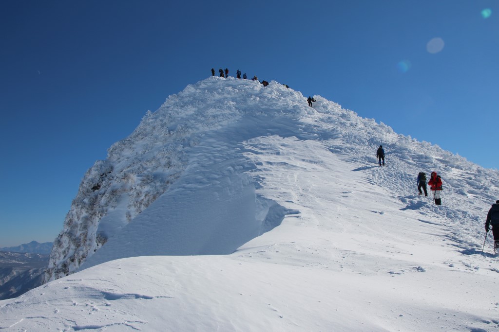 何度目か覚えていませんが、雪の谷川岳に登ってきました。(去年も登ったし、多分5回目くらいかな)何度登っても、素晴らしい山なので飽きません。それに、東京から日帰りできるのも魅力です。ただ、それもすべて「晴れれば」ですけど。日本海側気候の山ですから、基本的に冬季は天気が良くない(だから雪がたくさん積もる)のですが、この3連休初日は、晴れの予報になりました。といっても天気予報は確実ではない(平地はまだしも山は特に)のですが、果たして?天神平にて。晴れました!!が、谷川岳山頂方面はガスがかかっています。とにかく出発です。天神平を出発した時間は9時43分でした。谷川岳天神尾根は積雪期と無雪期で、登り初めのコースが少し違います。夏道は登りはじめからしばらく山腹を巻きますが、冬のルートはいきなり直登で田尻尾根の稜線に出ます。この登りが、結構きつい。そして尾根に出たところからはしばらくアップダウンの少ないルートを進みます。これは田尻尾根の稜線に出たところです。この辺りからまた登りになります。晴れていますが、向こうにガスがかかっているのが分かります。ザンゲ岩を通過とうとう、ガスに突入です。あーあ、晴天もここまでか・・・・・・。と、思ったら、奇跡が起きて突然晴れました。左が日光白根山、中央右が武尊山。ここが一番きつい登りでした。肩の小屋直前。肩の小屋に着きました。ここまでくるとトマの耳山頂は目と鼻の先ですし、斜度もゆるくなります。なお、肩の小屋は冬季閉鎖中で、トイレも閉まっているとのことです。(冬季は、ロープウェイ天神平駅から山頂までトイレはない)肩の小屋通過が12時4分なので、天神平から2時間半でした。この日は割と好調に歩くことができ、夏の標準コースタイム+15分でここまで来ました。で、トマの耳山頂は目の前なのですが、ひとまずそこは通過して、オキの耳に向かいます。トマの耳山頂付近から。肩の小屋が目の前に見えます。爼倉の稜線。こちらは、まだ結構ガスがかかっています。トマの耳へ。トマの耳手前でオキの耳を振り返って撮影。オキの耳山頂に着きました。確か苗場山だったと思います。稜線はさらに先まで続きます。左が茂倉岳、右が一ノ倉岳。いつか、この先を朝日岳まで一周してみたいですが、冬はどう考えても無理かな。トマの耳に向かって引き帰します。続々と登ってきています。以下次回に続く。