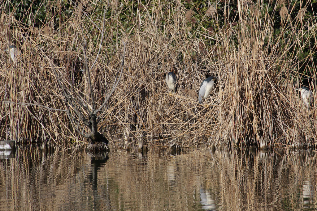 ゴイサギがウジャウジャいました。全部で5羽(写真に写っている以外にもう1羽いました)