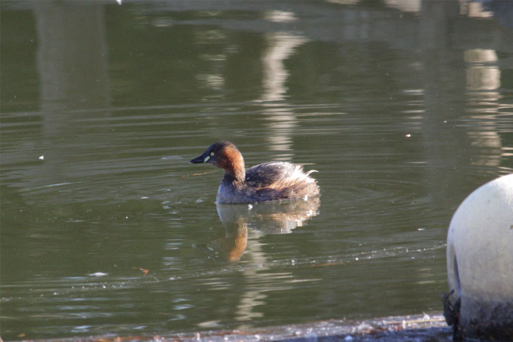 カイツブリ。水に浮いているし、シルエットもカモに似ているので、間違えられやすいですが、カモとは縁遠い鳥です。