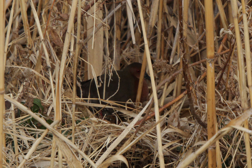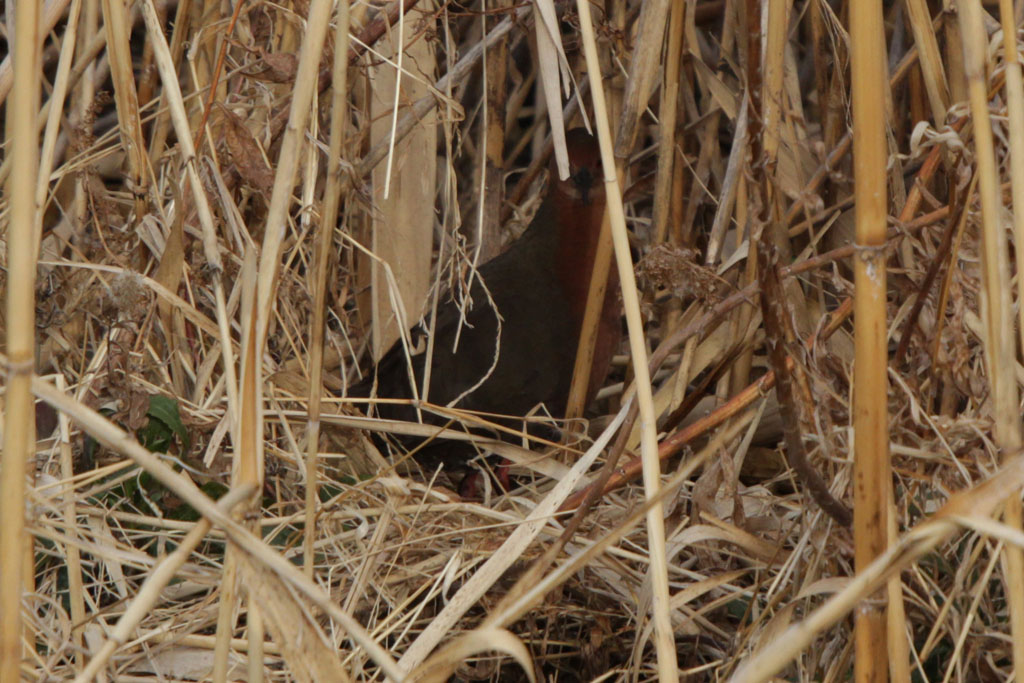 ヒクイナ。葛西臨海公園のアシ原の中にいることは分かっていましたが、滅多に人前に出てこない鳥です。珍鳥ではないけれど、目撃する、撮影するのはなかなか大変な鳥ですが、偶然にもアシ原の外れ際にいたので、撮影できました。