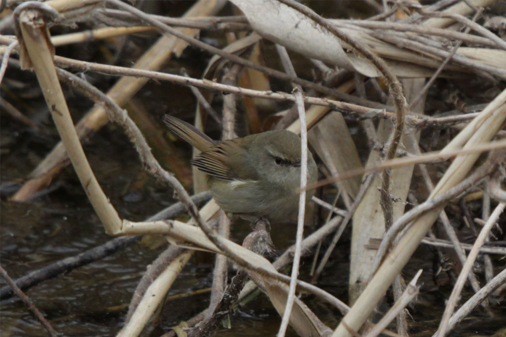 ウグイス。これも茂みの中などにいて、開けたところにはなかなか出てこない鳥です。今の時期は、まだホーホケキョとは鳴きません。