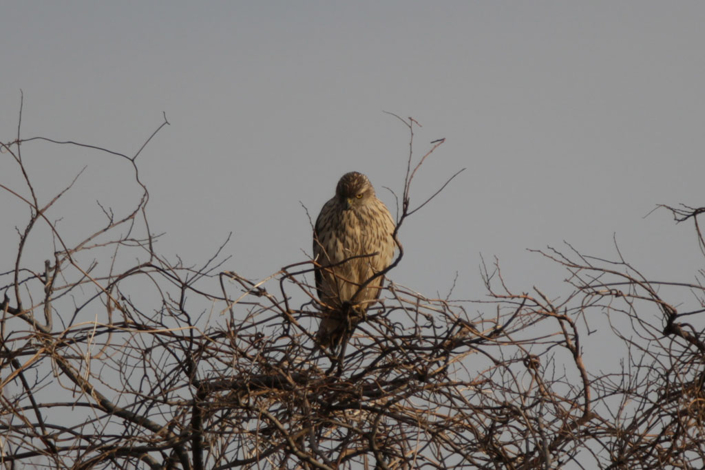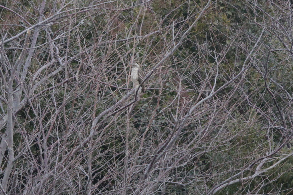 ウォッチングセンターの前。ハイタカ、という声を聞いたので、撮って帰宅後に確認したら、オオタカの若鳥でした。この少し前、別の場所でハイタカも見たのですが、タッチの差で写真は撮り損ねていたのです。
