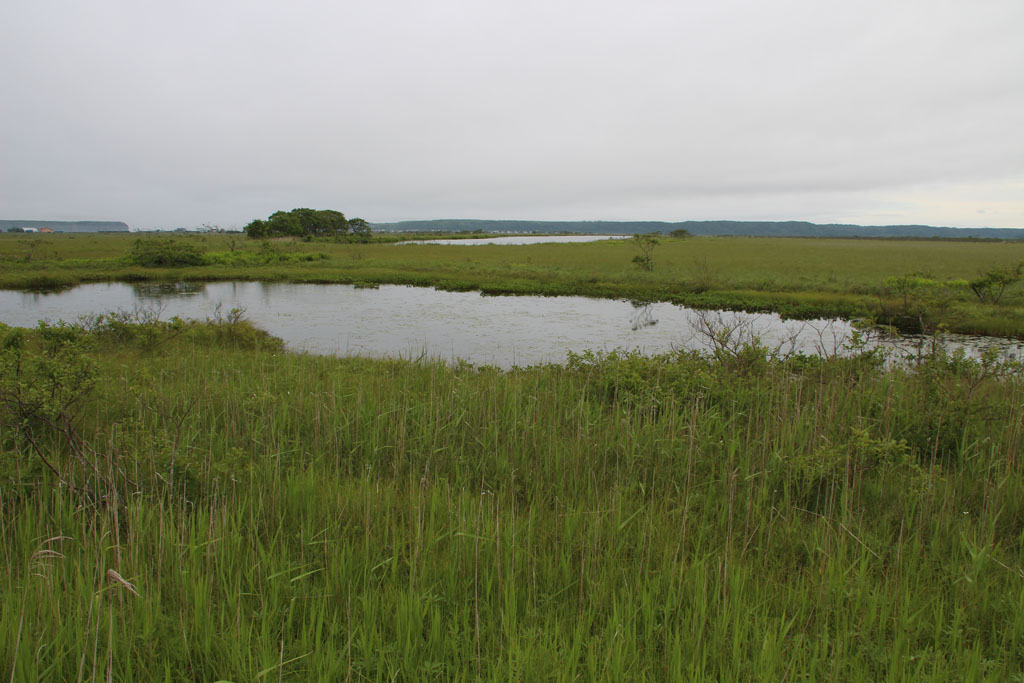 湿原を渡りきると、向こうに太平洋、そして沖合いの島が見えます。
