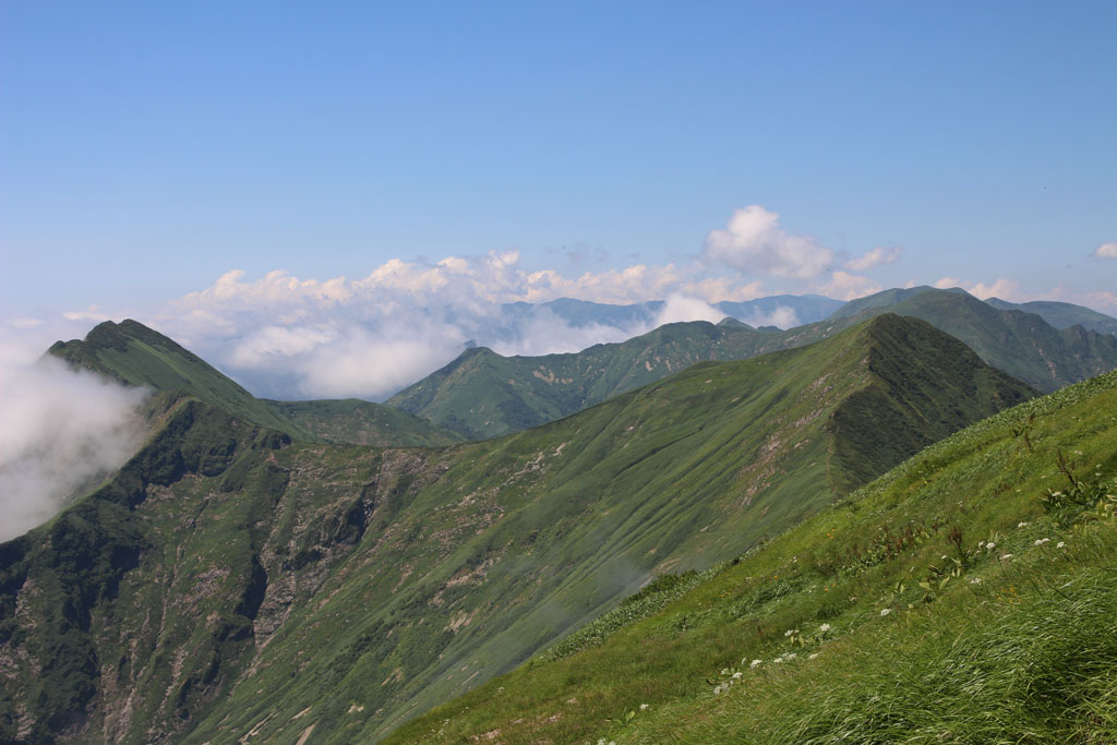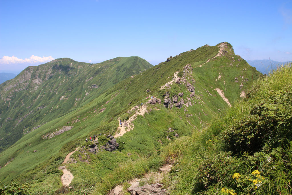 万太郎山、仙之倉山、平標山へと続く尾根。いつか行きたいけど、歩く人は格段に少ないです。