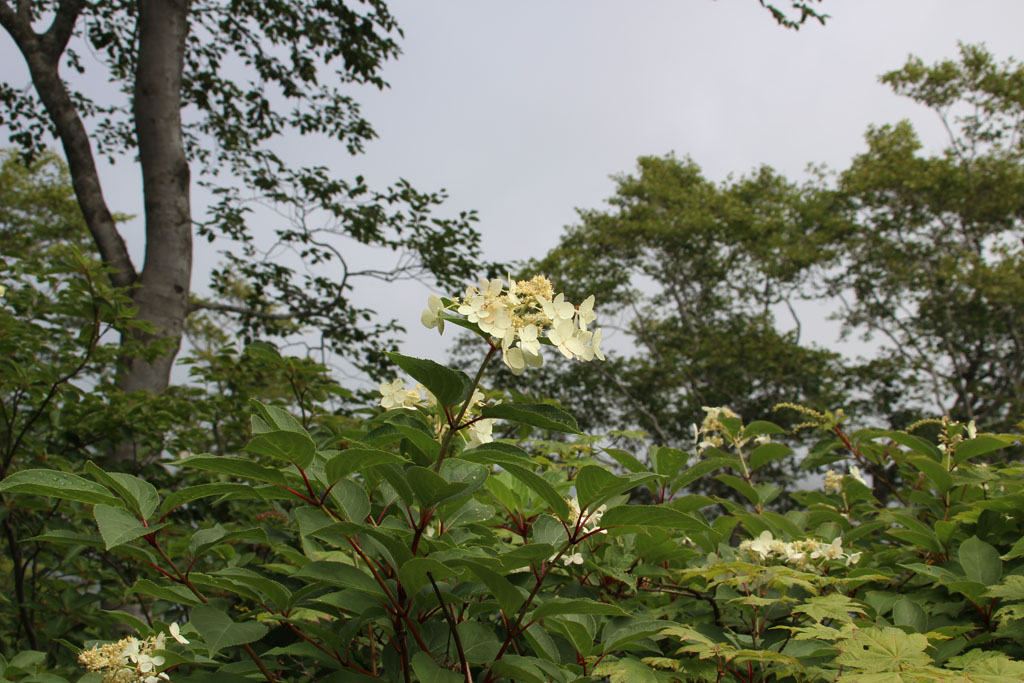 朝9時過ぎには、標高1319mの天神平を歩きはじめました。台風がこの翌日に日本上陸しましたが、このときはまだ天気は問題なく、この時間帯は薄曇でした。