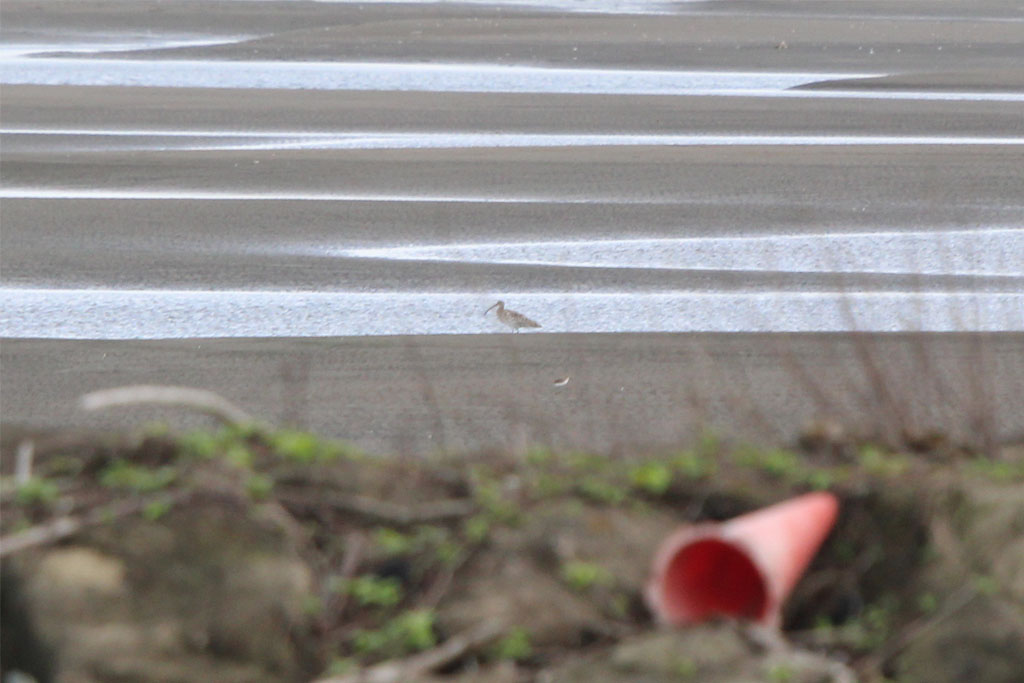 ダイシャクシギか、ホウロクシギ。この距離ではどちらか区別するのは至難です。