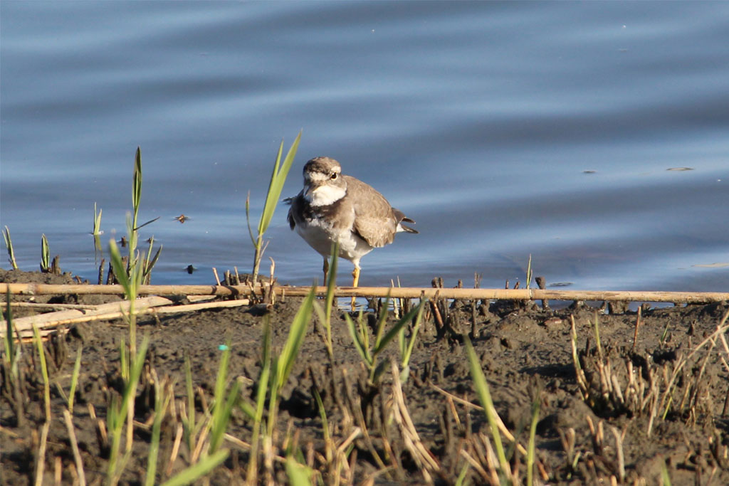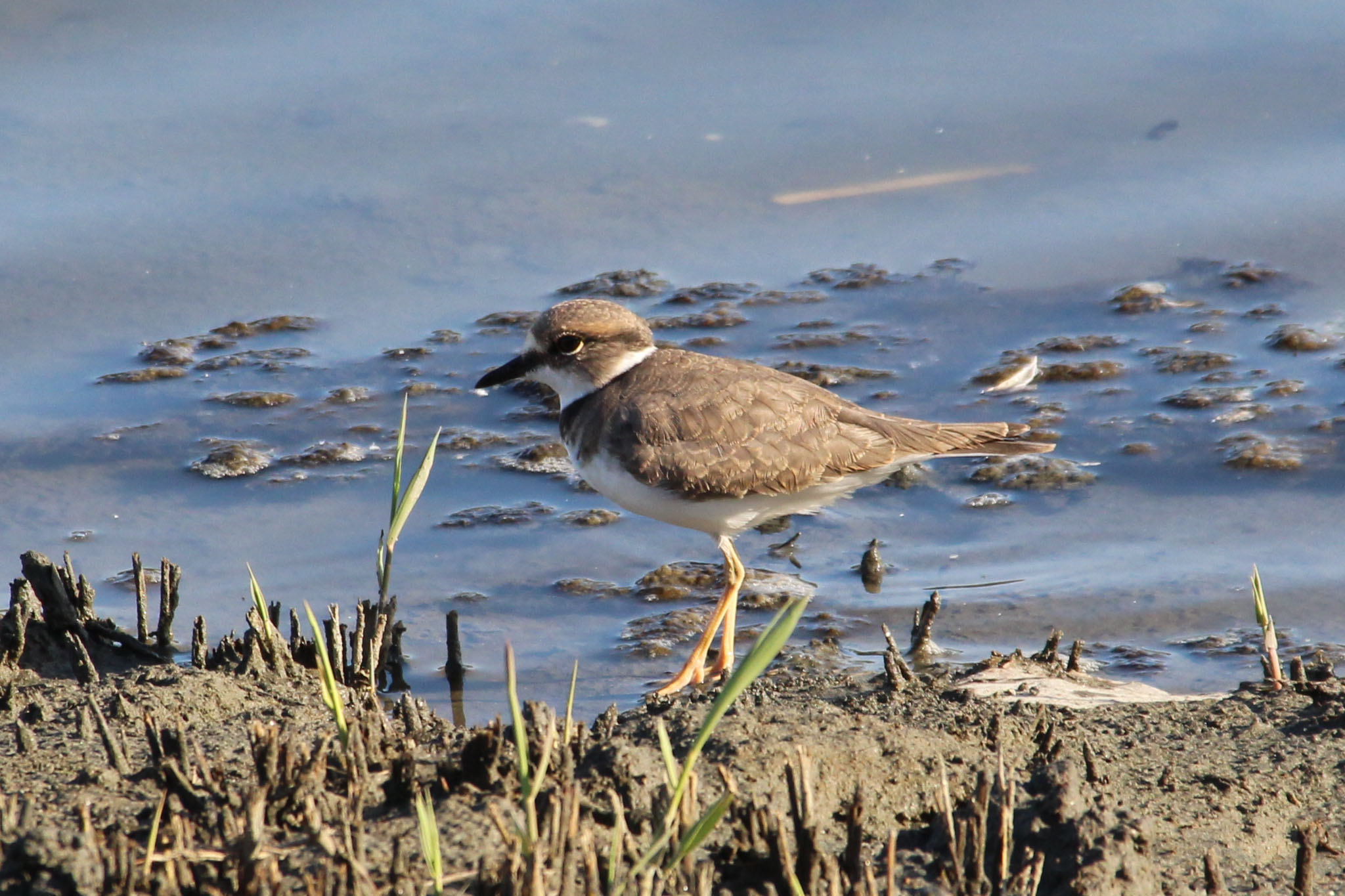 2号観察小屋にて。そのときは、なんかチドリだなと思って、とりあえず写真を撮っただけなのですが、後で野鳥公園レンジャーブログを見ていたら、イカルチドリであることに気が付きました。なるほど、確かにくちばしがやや長めです。