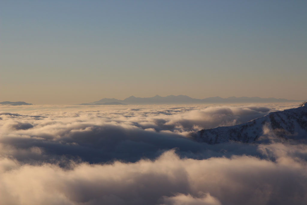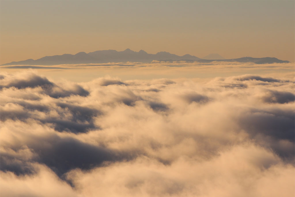 八ヶ岳と、その向こうにうっすらと富士山も見えます。