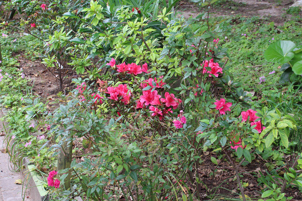 なんと、ヒラドツツジです(東京などでよく植え込みに使われているツツジ)。もう満開、というか、そろそろ枯れはじめています。