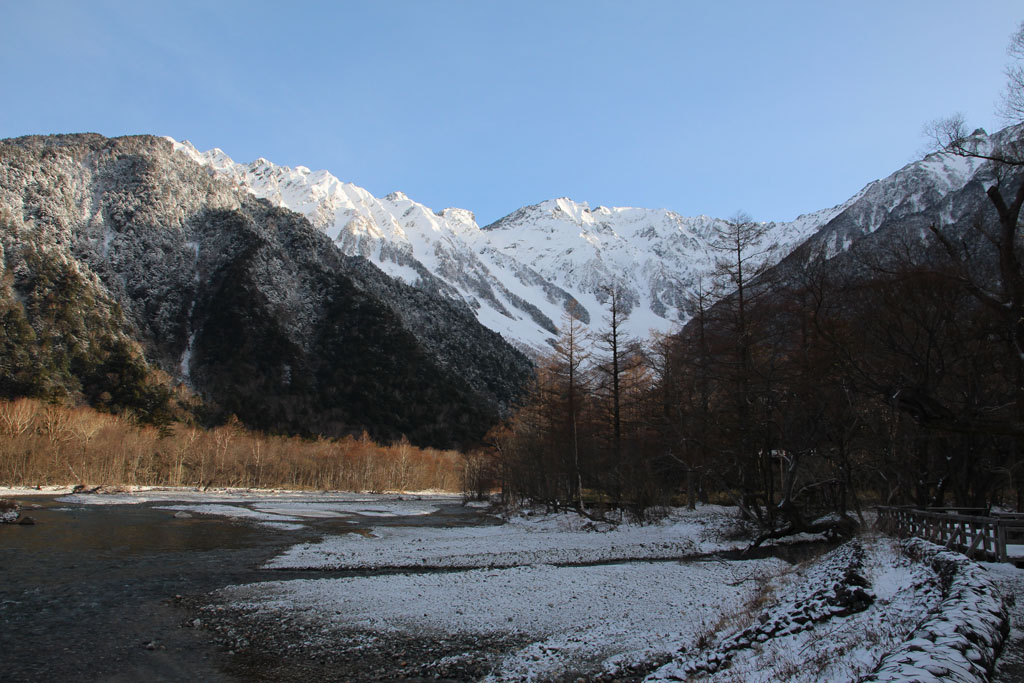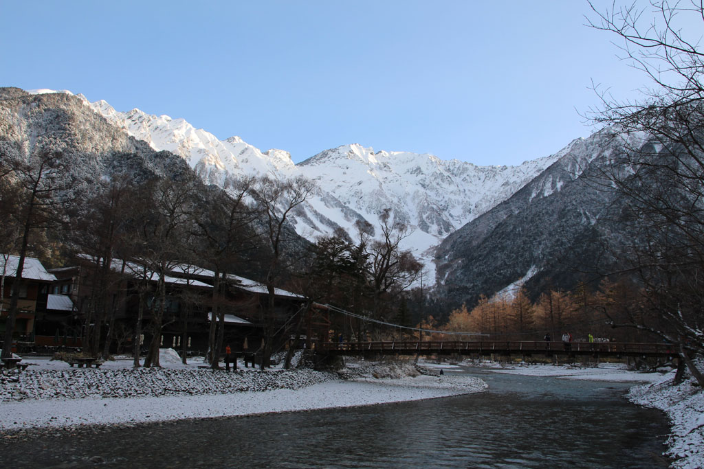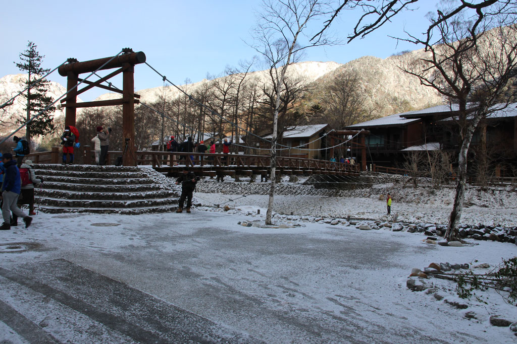 夜行バス「さわやか信州号」で28日朝上高地に到着しました。前日東京は雨でしたが、上高地は雪だったようです。