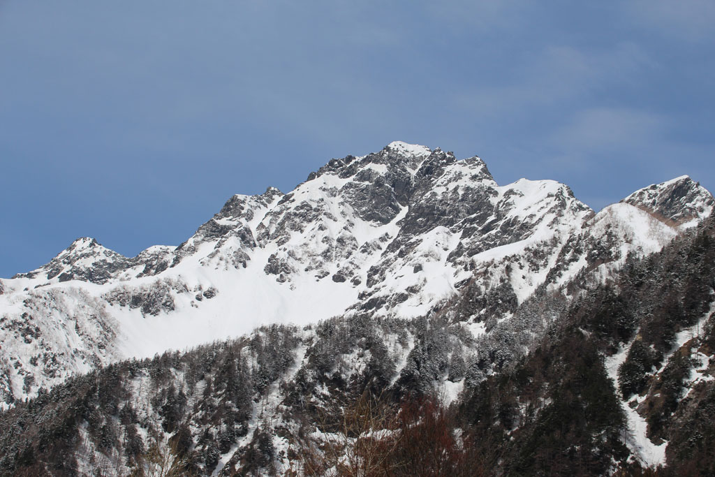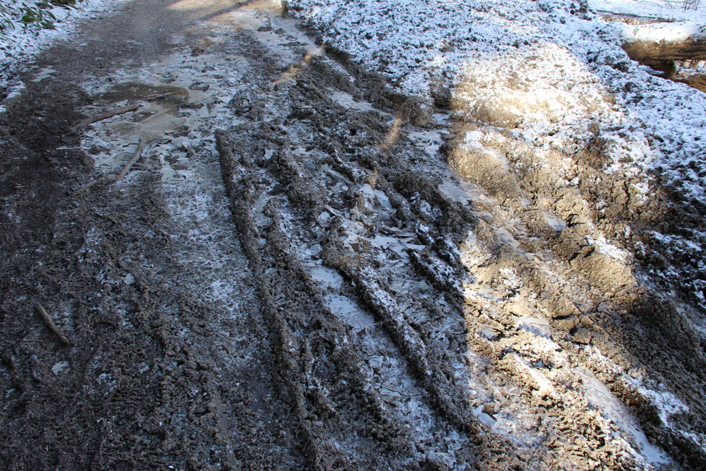 前日までのぬかるみがカチンカチンに凍結。往路は横尾まで、ずっとこんな状態で、凍結したぬかるみは汚れないのはいいけど、滑る滑る。