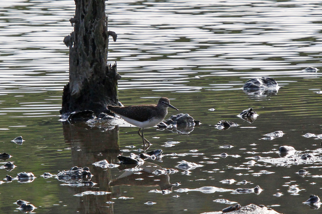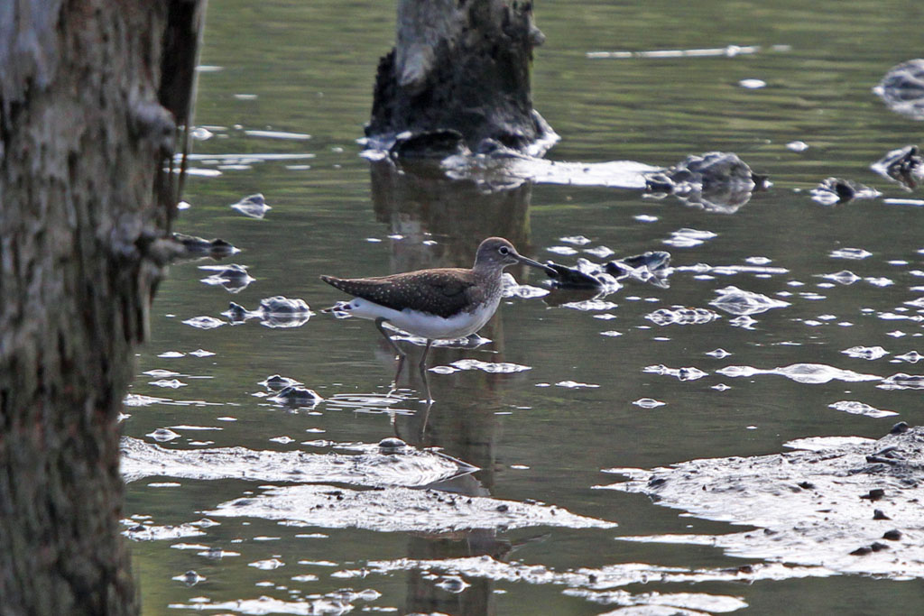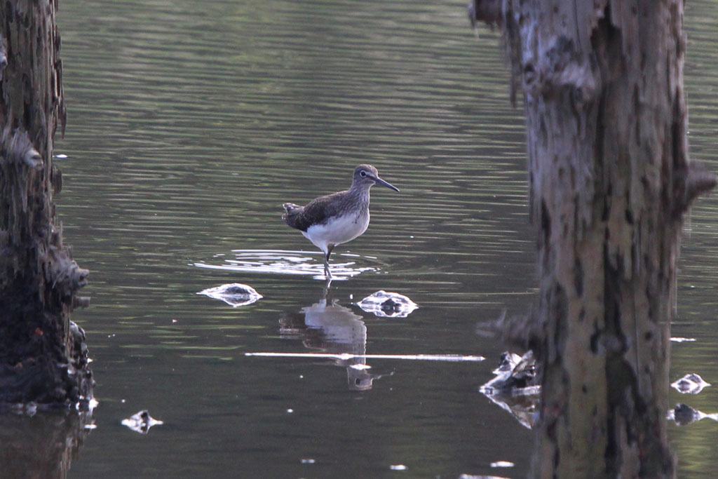 最初、コチドリが4~5羽(多分親子)以外は見当たらず、シギは1羽もいないと思っていったん帰ろうとして、途中でベテランさんに「クサシギが杭の陰にいるはずだから探してみな」と言われて引き帰したら、見つかりました。