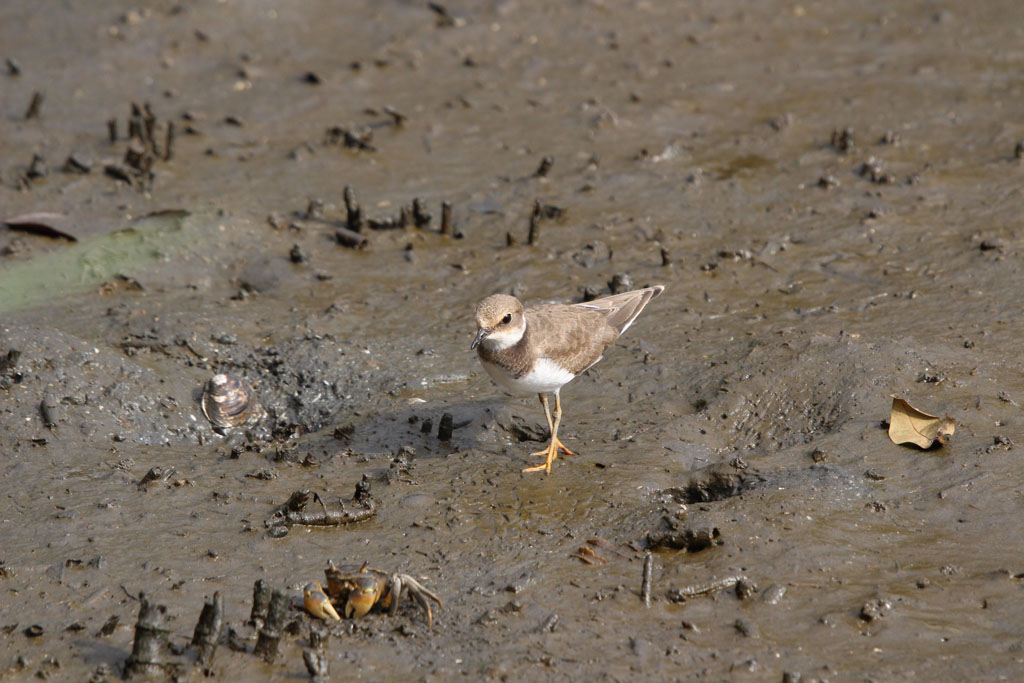 メダイチドリは十数羽いました。これは成鳥なので先ほどのオオメダイチドリの幼鳥とは色が違いますが、成鳥同士、幼鳥同士だと色はよく似ています。オオメダイチドリはくちばしと足が長いことが識別ポイント。足の長さは正直よく分からなかったけど、くちばしの名坂は顕著に違いました。あと、名前のとおり大きさもオオメダイチドリの方が大きいらしいのですが、これは見た目ではほとんど分かりません。
