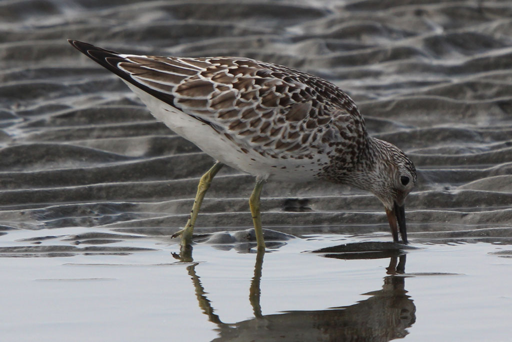 前日の方がコオバシギの赤味が強かった気がします。ちょうど夏羽と冬羽の生え変わる時期なので、1日ごとに夏羽は抜けていっているのでしょう。