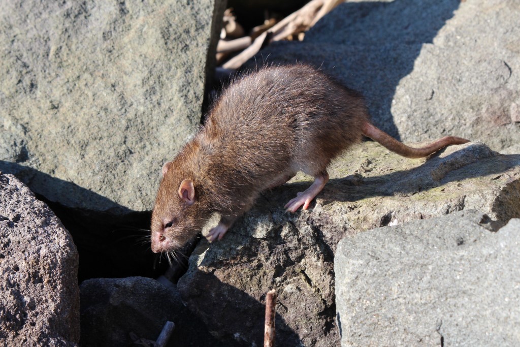 鳥じゃないですけどね。笛練習をしていたら、足元の岸壁をのそのそ歩いていたので。クマネズミと思ったのですが、人家は近くにないので、何らかの野ネズミ類?でもクマネズミのような気がします。ドブネズミは明らかにこれより大きいので違うと思われます。鳥と違ってネズミの識別は全然自身がありません。