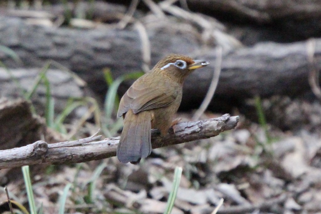 ガビチョウ。日本産の鳥ではない、いわゆる篭脱けで、特定外来生物に指定されています。