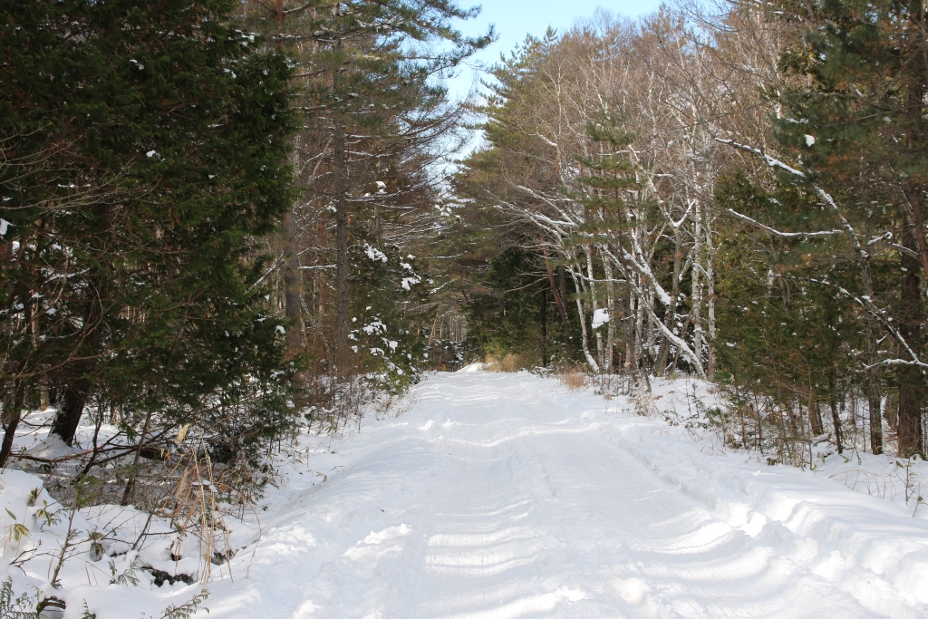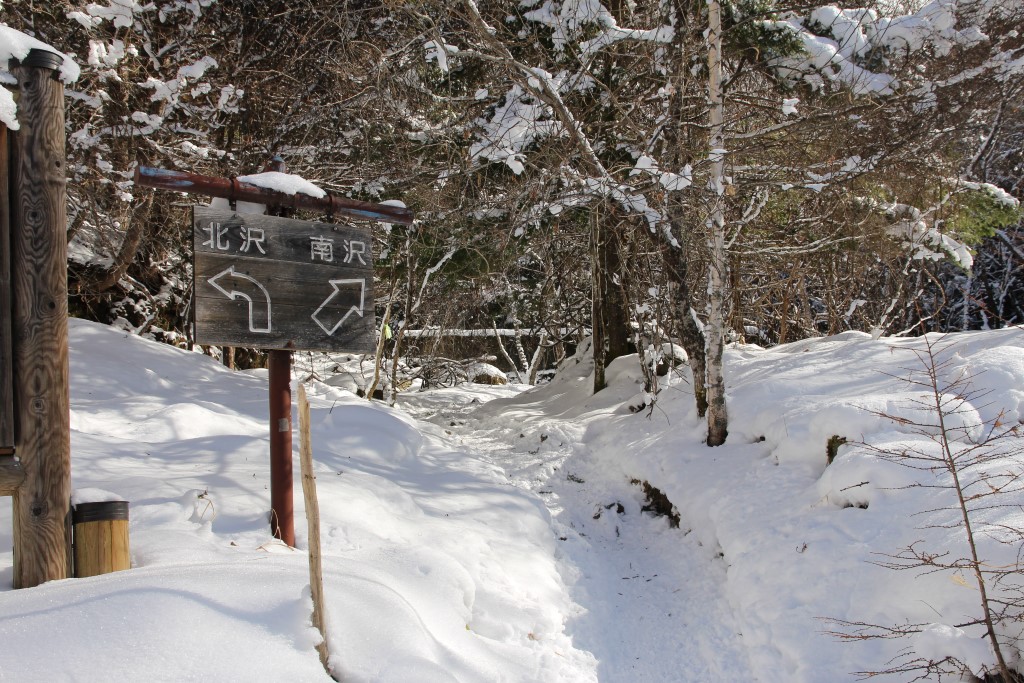 美濃戸口から美濃戸までは車道を歩きます。車が頻繁に往来するので、路面はツルツルのアイスバーンです。登りは問題ないのですが、下りは結構怖いことが多いです。ただ、この時は、少し前に降雪があって、新雪があったので問題ありませんでした。