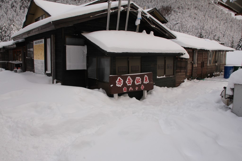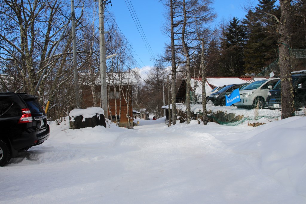 バスは美濃戸口までしか行きませんが、車なら美濃戸まで入れます。年末だけあって、美濃戸の駐車場にはいっぱい止まっていました。