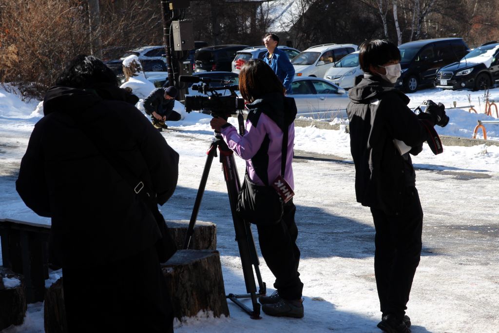 美濃戸口ではNHKが取材してました。自分は極力カメラに映らないようにして、自分のカメラではちゃっかり取材チームを撮ってしまいました。