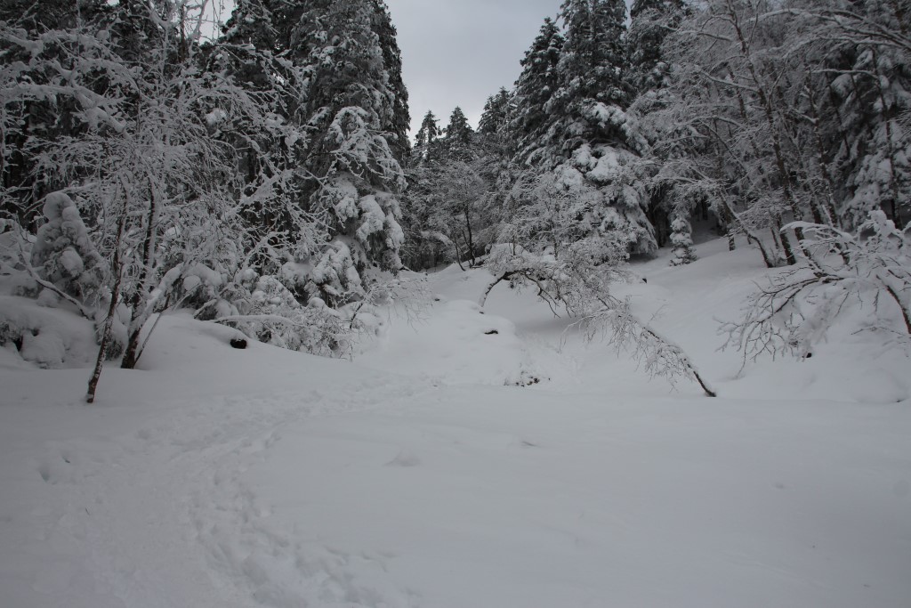 途中までアイゼンなしで登りましたが、この手前あたりでアイゼンをつけました。