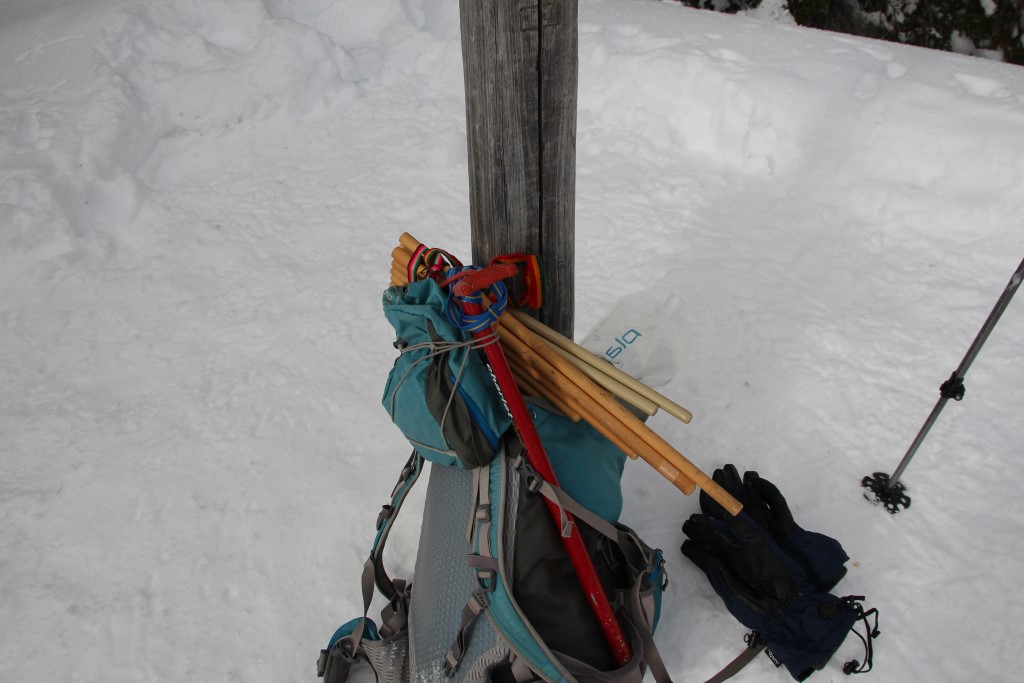 実はこの時まで硫黄岳に登るか赤岳にするか迷っていました。登山計画書には硫黄岳って書いたし、小屋のチェックインでも行先硫黄岳って書いたのですが、硫黄岳は3年前に登ったけど赤岳は(冬は)6年前だしなあ、とかいろいろ考えました。