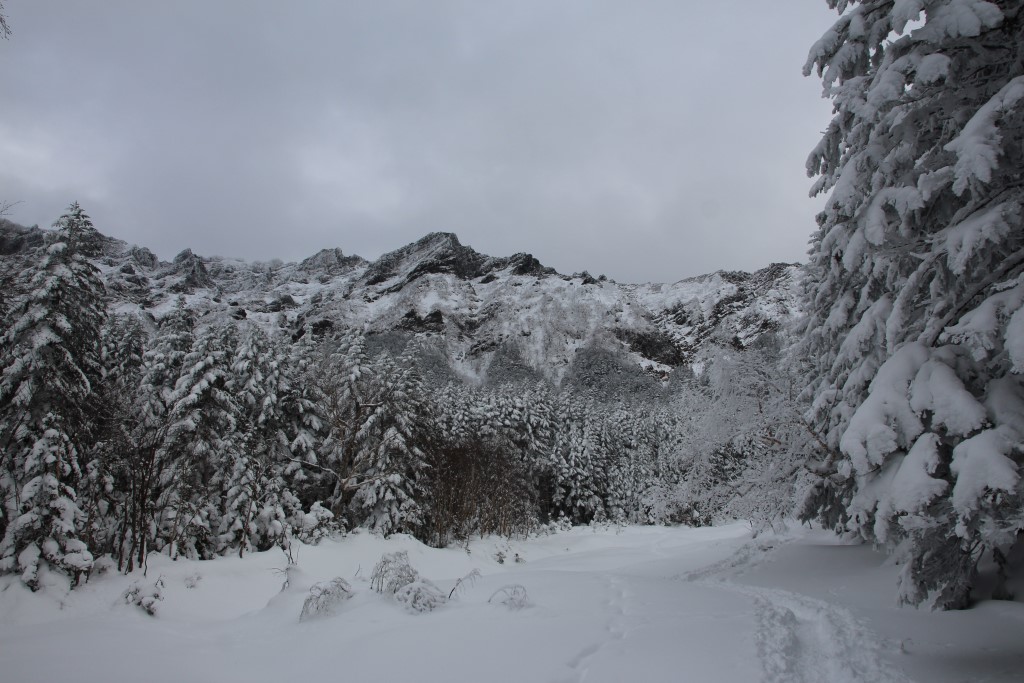 しかし、12月初めに右膝を捻挫して、やっと治ったところであることや、雪の付き具合、難易度などを総合的に考慮して、結局は計画書どおりに硫黄岳に向かいました。(難易度は赤岳の方が圧倒的に上です)