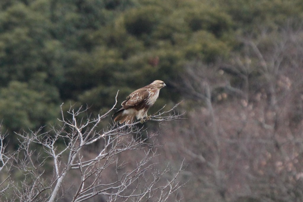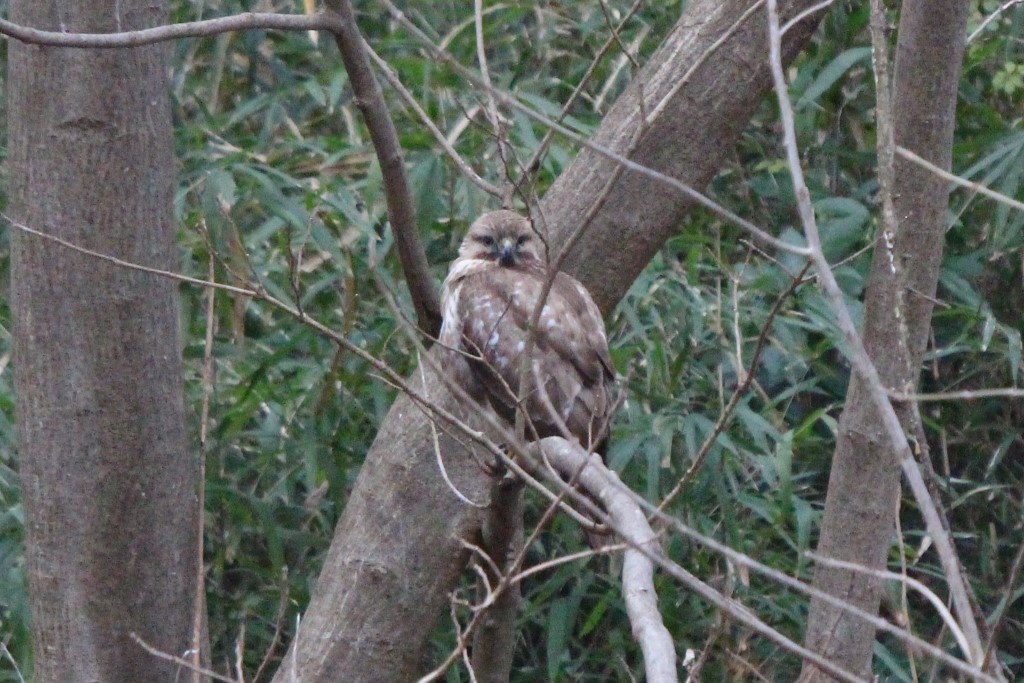 ノスリ。この鳥はタカの仲間なのに目つきが優しい印象で、あまり「獰猛」という印象がないのですが、この姿勢だと精悍さを感じます。