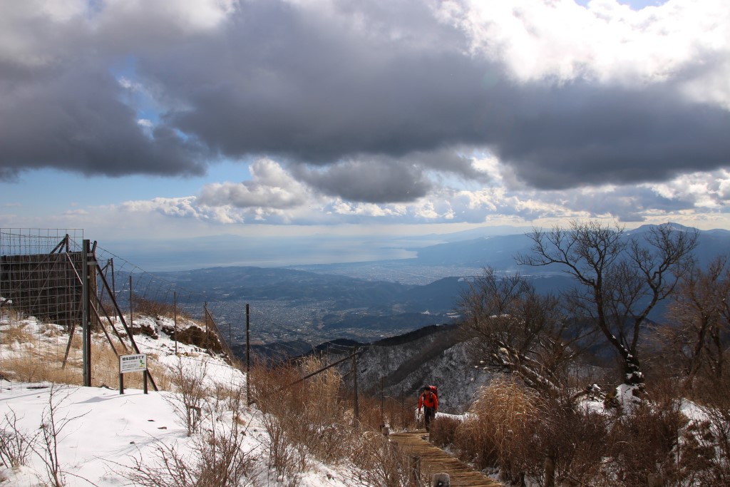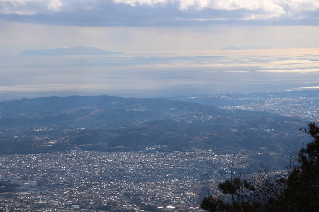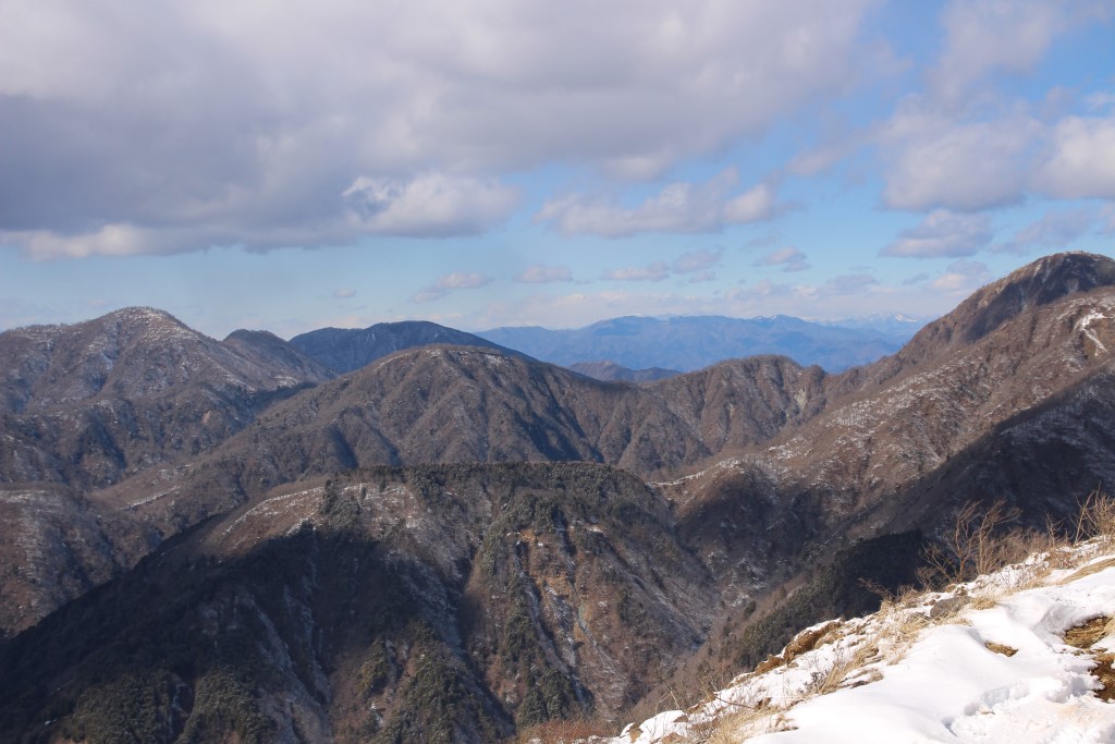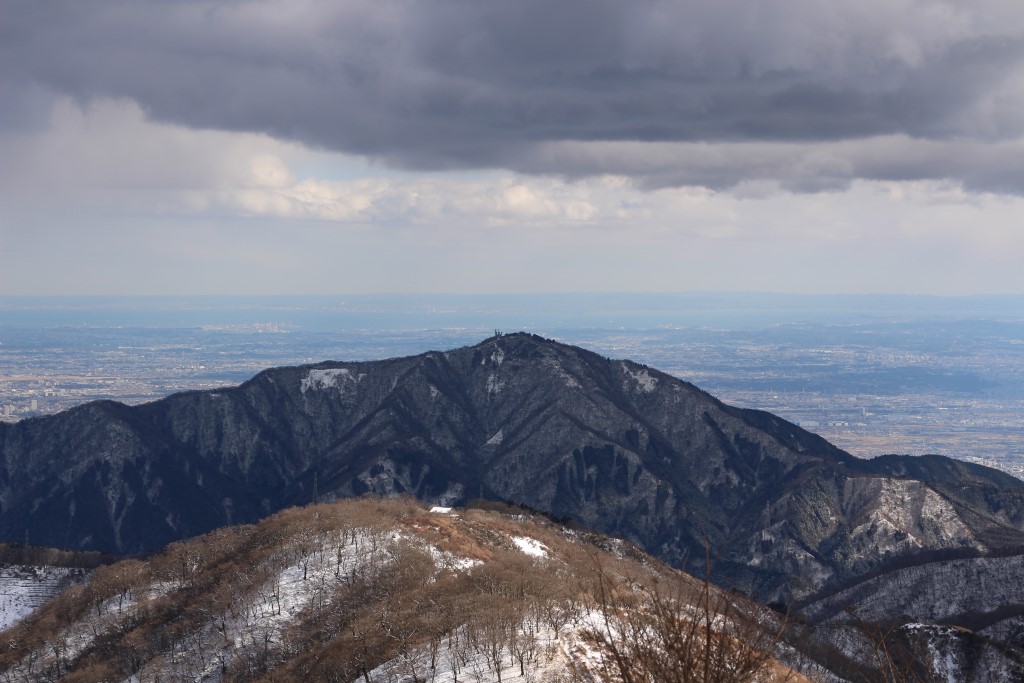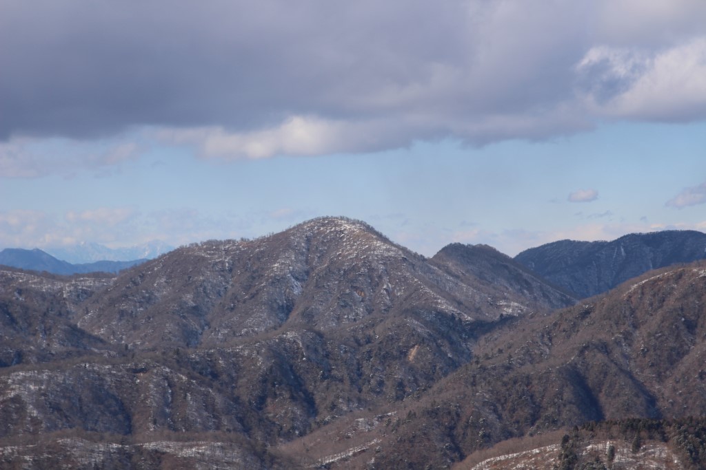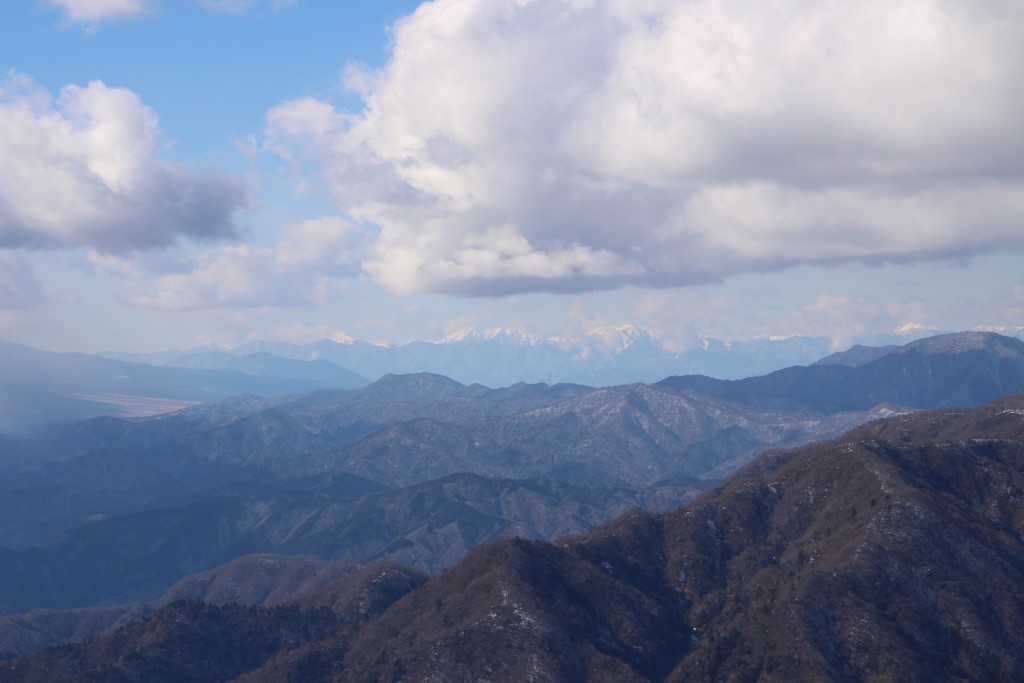 左端の檜洞丸と右端の蛭ヶ岳の間に八ヶ岳と秩父山地が見えます。