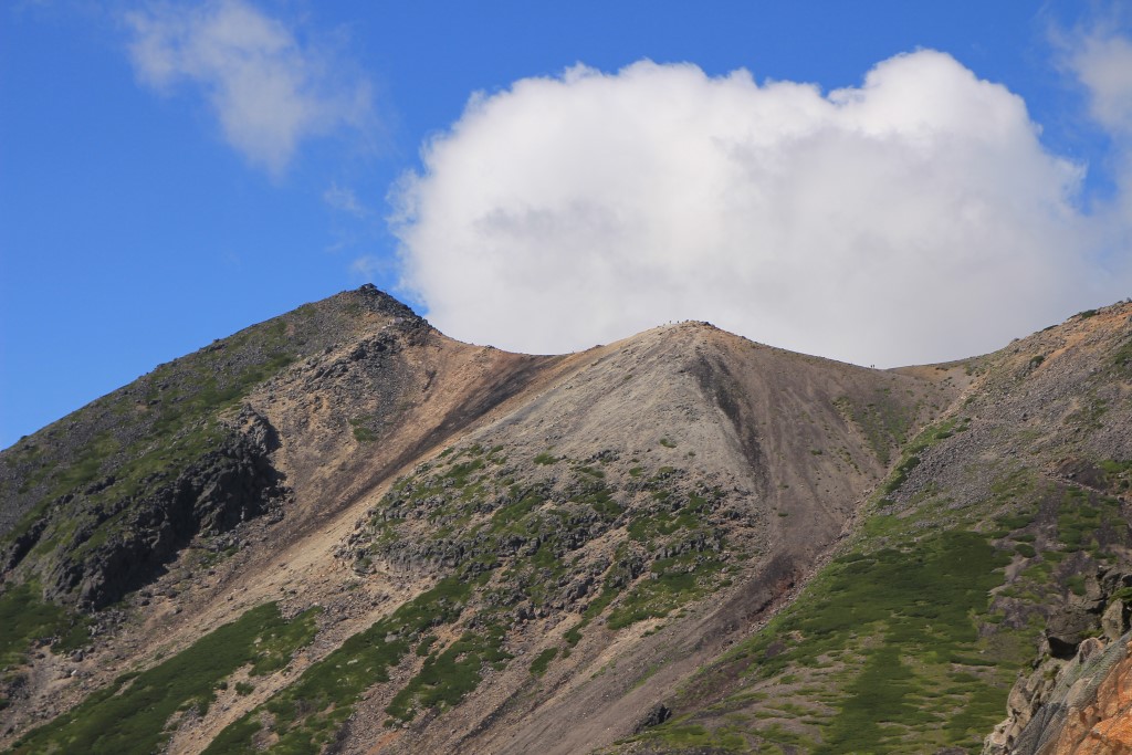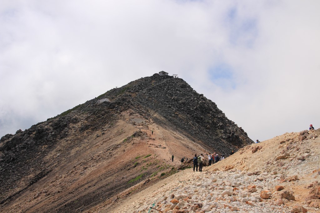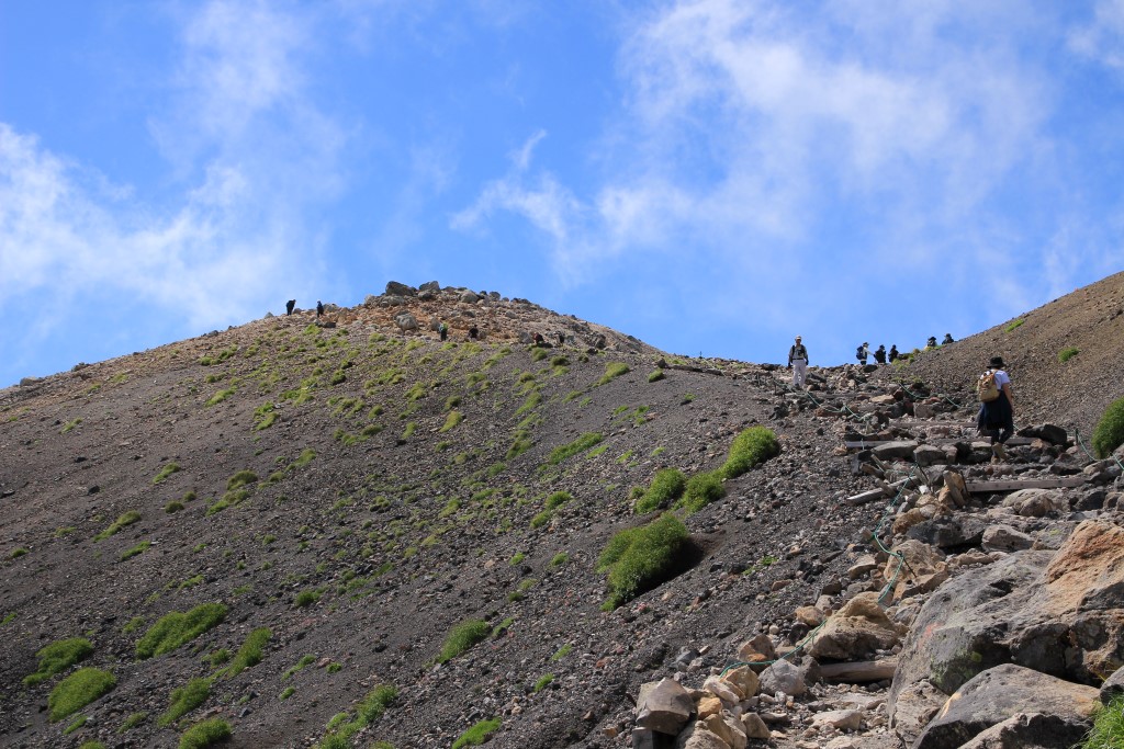 登りにかかります。畳平からの標高差たった300mしかありませんが、高度3000mなので、標高差の割には息が切れます。