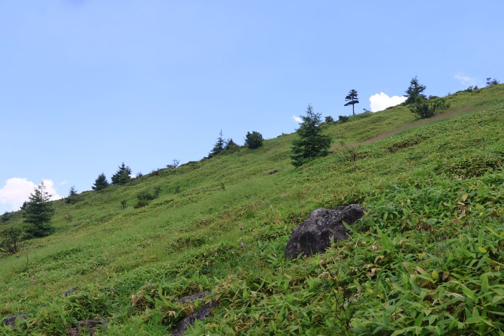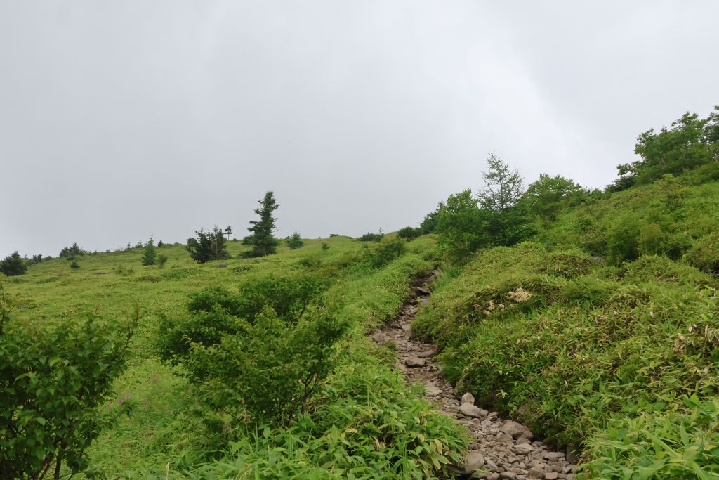案の定雨が上がったので、登りを再開します。もっとも、この写真のときは、晴れ間が広がり始めていたものの、まだ雨は降っていたのですが。