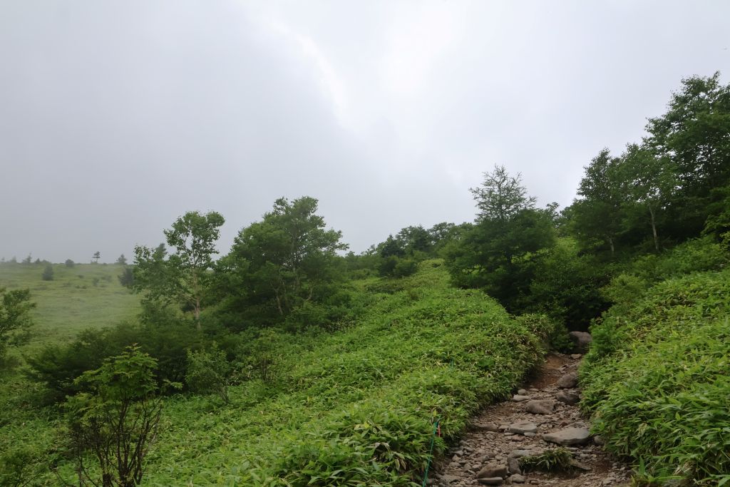 何度も登っている山だし、このまま下山することも考えましたが、新幹線でここまできて撤退はもったいないのと、絶対雨は上がるだろうと考えて、しばらく樹林帯で待機。