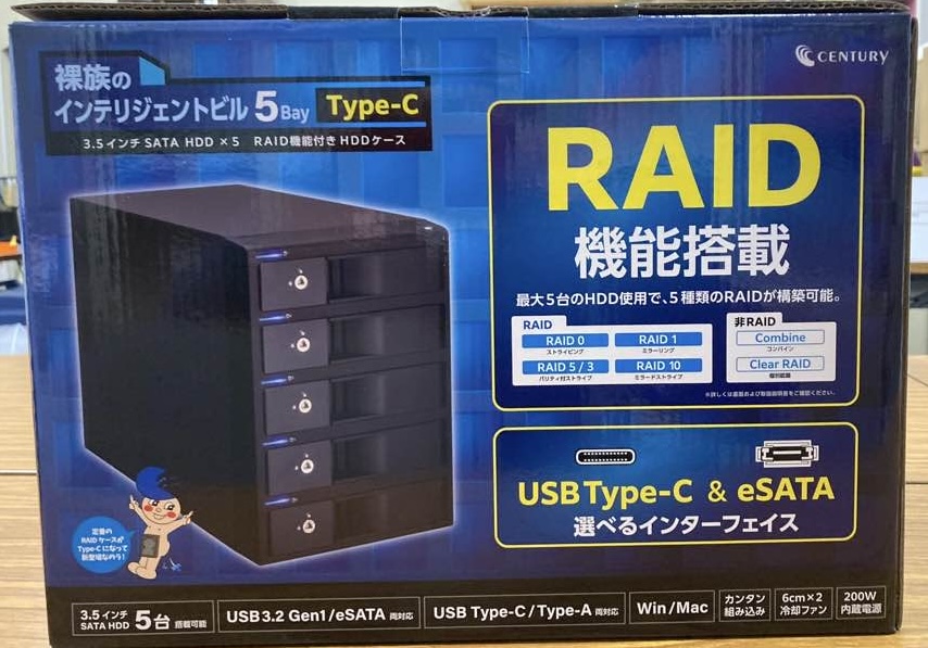 センチュリー|Century Corporation HDDケース USB-C+USB-A接続 裸族のインテリジェントビル 5Bay Type-C ブラック CRIB535EU3C [3.5インチ対応 /SATA /5台]