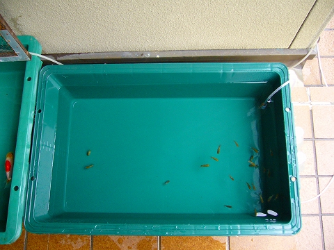 我が家に新しい仲間がやってきました。らんちゅうの子供です。まだ1ヶ月ぐらいです。