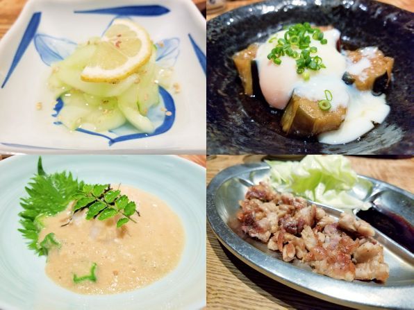 -ソロで行っていないプチ遠征記-『居酒屋 ひあさ』今日のお昼は鯉池町の狭い路地にある、「居酒屋 ひあさ」さんです、、、以前、夜の時間に訪問したことがありましたが、この5月からランチを提供していることを知り、行ってみることにしました。。。[お店外観・店内の様子など]午後1時20分ころに暖簾をくぐると、店内にはカウンターと座敷席に一組ずつのお客さんです、、、一人の私はカウンター席に着きました。。。ランチは初めてでしたが、カウンターの前には料理のサンプルを作ってくれています、、、各定食もできるようですが、お昼のメニューは"A定食(肉料理)"、"B定食(魚料理)"、"C定食(どんぶり物)"ということでした。。。[C定食(どんぶり物):¥650]で、今日は肉は豚生姜焼き、魚は鯛のホイル焼き、どんぶりは名前はないけど、イタリアン風どんぶりだということでしたので、、、"C定食(どんぶり物)"をお願いすることにしました。。。やがて待つこと約8分、、、定食のできあがりです。。。[どんぶり]"えっ、、、マジっ!?" ・・・思わず口からその言葉が漏れました。。。というのも、どんぶりの他の一品等が、大変なことになっています!! 茶蕎麦、味噌汁、サラダ、小松菜、大根、牛蒡と胡桃、香物、冷奴です、、、この品数で650円??? もう一度メニューを確認しましたが、やっぱり650円です。。。いやあぁぁぁ、びっくらポンっ!!(チョイ古)[一品いろいろ・サラダ・汁物]と言うことで、気になるお味です。。。ますずメインのイタリアン風どんぶり、、、ご飯の上に生ハムや茄子、ハプリカ、玉ねぎなどが、トマトソース風味で煮込まれ、パルメザンチーズがかかったものがトッピングされています。。。ほぅほぅほぅ、ドリアのようでもないし、リゾットでもない、、、独特などんぶりですが、妙に美味しいっ!![各アップで]また茶蕎麦は氷で冷やされた出汁がGOOD!! 各一品等もさすが居酒屋さん、、、一つ一つが丁寧に作られていて、迷い箸になってしまいそうです。。。一日に30品目を食べるのが理想なら、この定食はそのハードルをクリアしているでしょう、、、つまり一日の栄養素を、この一食で摂取できたような感じですねぇ。。。うんうん、旨い旨い~☆[食後のデザート&ドリンク:¥100]食後にはわずか100円で、デザートとドリンクが付きます、、、私はコーヒーをあまり飲まないので、コーラとレモンシャーベットにしてもらいました。。。最後にもう一度、、、これだけの品数の定食+デザート&ドリンクで、総額わずかに750円ですヨ~~♪[ランチメニュー]*************************************************【お店の情報】住所:愛媛県今治市鯉池町3-3-39電話:営業時間:11:00~14:30、17:00~24:00定休日:火曜日 席数:約70席駐車台数:約10台HP:?【メニュー】(ランチメニュー)※記事中写真ご参照ください*************************************************