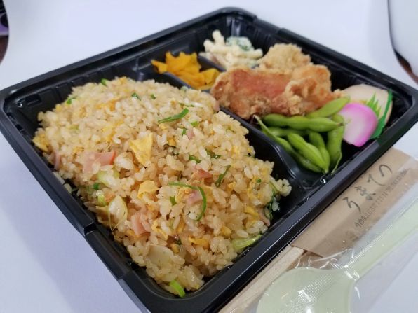-本日はテイクアウト!-『焼きめし弁当をテイクアウト(うまてつ)』今日のお昼は実家(古谷)に用があり、食事に出る時間がなくなったので、、、「中華そば うまてつ:リンク多いのでたどってください」さんで"焼きめし弁当"をテイクアウトです。。。[焼きめし弁当:¥680]「うまてつ」さんは徒歩10秒の距離ですので、午後2時前に"焼きめし弁当"をお願いして、、、いったん店に戻り、約5分後にもう一度受け取りに行きました。。。[各アップで1]で、店に帰ってお弁当をオープンです!! 以前もいただきましたが内容は、"焼きめし"、"から揚げ2個"、"味玉(半分)"、"枝豆"、"カマボコ"、"マカロニサラダ"、"漬物"です、、、いつもながらゴージャスですねぇ。。。[各アップで2]さぁ気になるお味です。。。強火で程よくパラっと仕上げられた"焼めし"は、塩加減もGOOD!! そして具材はチョップドハム(赤いハム)、卵、ネギです、、、こんな昔ながらの"焼めし"が私は好きですねぇ。。。またサクサクに揚がった"から揚げ"や、しっかり味のしみた"味玉"もGOOD!! うんうん、旨い旨い~☆************************************************* から揚げ弁当 \580焼きめし弁当 \680玉子めし弁当 \680中華そば並 \550(税込み容器代込み)煮干しつけ麺並 \600(税込み容器代込み)※トッピングはなし*************************************************