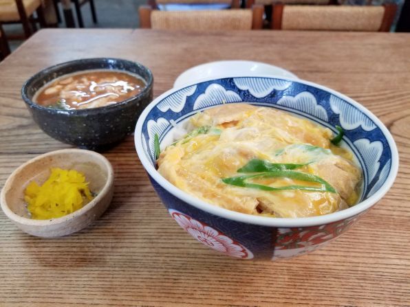 -ソロで行くプチ遠征記-『きつね丼+みそ汁(かねと食堂)』今日のお昼は、ソロで久しぶりに「かねと食堂:リンク多いのでたどってください」さんです、、、大阪の人が好きだという"きつね丼"が気になりましたねぇ。。。[きつね丼+みそ汁]午後1時15分頃に暖簾をくぐると、店内には10人余りのお客さんがいます、、、移動自粛解除の翌日なので、外でお昼を食べる人が増えたのかもしれません。。。私は"きつね丼"と"みそ汁"をお願いし、代金を払って席に着きました。。。やがて待つこと約6分、、、最初に"きつね丼"ができあがり、さらに待つこと約2分で"みそ汁"のできあがりです。。。[きつね丼:¥650]さぁ気になるお味です。。。"きつね"なので揚げが短冊状に刻まれ、ネギと卵とじになっています、、、揚げからはほんのり甘い出汁がジュワっと出てきます。。。もちろんご飯にも丼の出汁が染み、Wで出汁の味を楽しめます、、、今日は二日酔いだったので、こんな丼が胃にも優しいですねぇ。。。[みそ汁:¥180]また「かねと」さんの"みそ汁"は、味噌の味が濃いめです。。。そして具はサイコロほどの大きさの豆腐、ワカメ、卵、、、その卵は半熟なので"みそ汁"を飲んだ後、"きつね丼"にトッピングしちゃいました。。。うんうん、旨い旨い~☆[各アップで]*************************************************【お店の情報】住所:愛媛県今治市室屋町1丁目2-16電話:0898-22-1997営業時間:月・木・金:8:00~15:00 土・日・祝:8:00~19:00定休日:火・水曜日(祝日は営業)席数:60席駐車台数:3台HP:?【メニュー】(一例)※この記事ご参照ください*************************************************