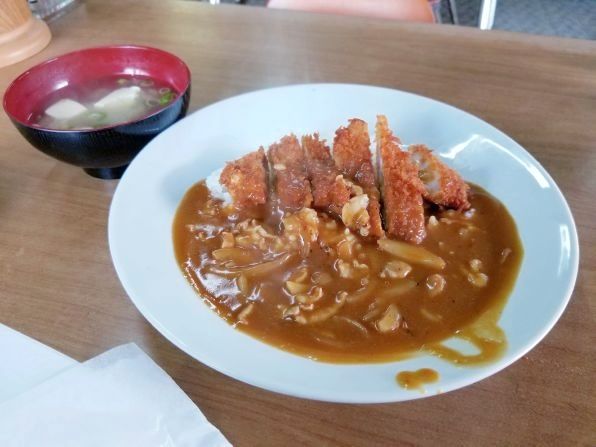 -ソロで行っていないプチ遠征記-『お父さんの手作りカツカレー(公園堂食堂)』今日のおBARIの老舗食堂「公園堂食堂:リンク多いのでたどってください」さんです、、、お父さんの手作り"カツカレー"が食べたくなりましたねぇ。。。[カツカレー:¥650(税別)]午後1時20分ころに暖簾をくぐると、他にお客さんはいません、、、私は席に着き、迷わず"カツカレー"をお願いしました。。。やがてトントンと豚肉をたたく音が聞こえてきて、、、待つこと約8分で注文のできあがりです。。。[アップで]さぁ気になるお味です。。。「公園堂食堂」さんのカレーは作り置きのものでなく、注文が入ってから玉ねぎや肉を炒め、カレー粉に片栗粉でトロミをつけた手作りカレーです、、、ルーはスパイシーでもなく、コクが強いわけでもなく、円やかだけど少し塩っぱい、和風なカレーなのですねぇ。。。[カツをアップで]またカツは揚げたてのサックサクで、豚肉も白くてGOOD!! そして「公園堂食堂」さんのカレーには、ナゼか鰹風味プンプンの"味噌汁"が付いてきます、、、"味噌汁"付きの"カツカレー"は、他店では見たことがないでしょう。。。うんうん、旨い旨い~☆[各アップで]