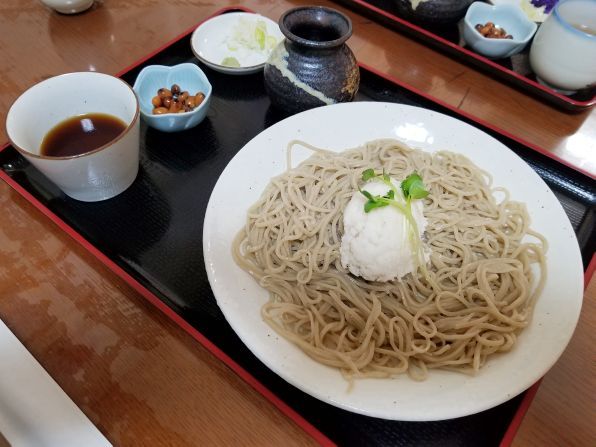 当然我々が一番のりでしたので、店内に他にお客さんはいません、、、我々は4人掛けのテーブル席に着き、二人ともお店オススメの"十割もりそば(並)"を、私は好物の"からみ大根"追加でお願いしました。。。やがて待つこと約5分、、、注文のできあがりです。。。