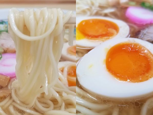 そしてスープは鶏ガラベースの、ほんのり甘いアッサリ醤油味でしょう、、、黄金色に輝き底が見えるほど透き通り、優しい優しい味ですねぇ。。。またトッピングの味玉の半熟具合も絶妙です、、、シャキっとしたチャーシューも私好み。。。うんうん、旨い旨い~☆