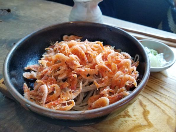 そして家内発注の"桜えびぶっかけ"は、配膳された時から、桜えびの風味がプンプン漂います、、、サクサクに揚げられた桜えびが、ぶっかけの蕎麦にベストマッチっ!! こちらも美味しい美味しい~~♪