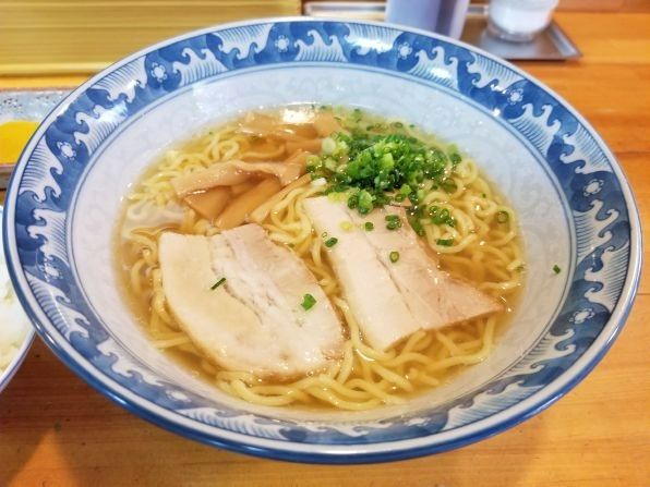 午後1時20分頃に暖簾をくぐると、店内には座敷席にお客さんが一組です、、、一人の私はカウンター席に着き、"ラーメン"と"ライス小"をお願いしました。。。それにしても安い、、、二つでワンコインの500円です。。。やがて待つこと約6分、、、注文ができあがりました。。。