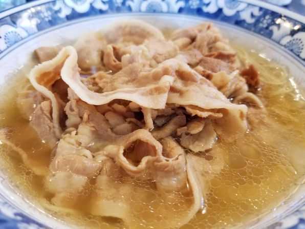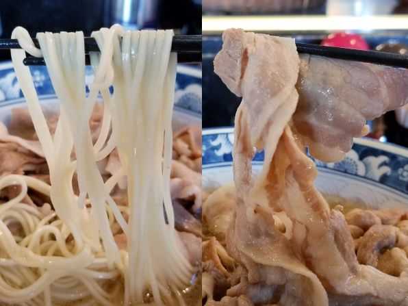 さぁ気になるお味ですが、ラーメン自体は 前々回 の記事をご参照ください。。。今回は"肉だく"だけあって、鉢の表面を覆うように、ほんのり甘い味付けの豚バラ肉がトッピングされています、、、これが牛肉なら"肉うどん"のような感じですが、豚肉なので"豚丼"っぽいですねぇ。。。まぁ逆にメンマやネギはなく、豚肉オンリーなので色合いや見栄えはビミョ~かな!? でもでも、旨い旨い~☆