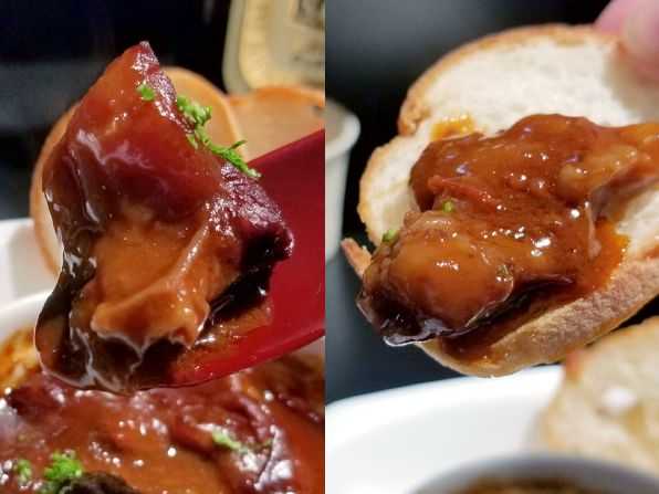 さてカウンター席に着き、まずはサッポロの赤星☆をいただきます、、、また事前にFBで確認していたので、"ビーフシチュー"をお願いしました。。。おおぉぉぉ、牛肉はスジ肉も入っていて、よ~く煮込まれているので柔らかい!! バケットもイイですが、白いご飯にかけてもGOODでしょう!!
